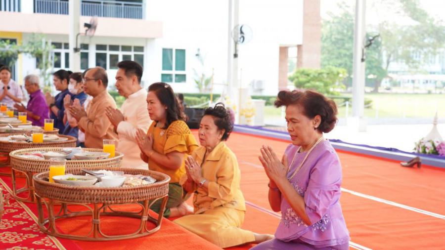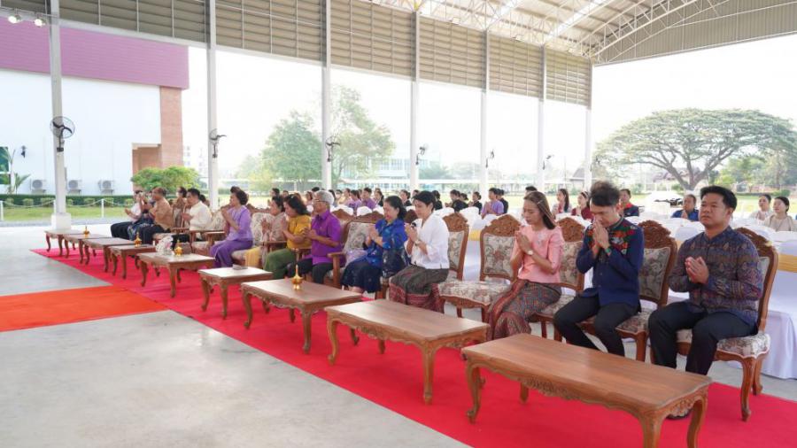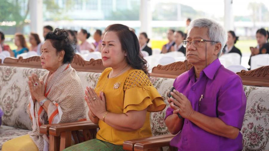 ดร. นิภา โสภาสัมฤทธิ์ อธิการบดี สถาบันบัณฑิตพัฒนศิลป์ พร้อมด้วยคณะผู้บริหาร ครูอาจารย์ นักเรียน นักศึกษา และบุคลากรเข้าร่วมกิจกรรมการทำบุญและเปิดอาคารโดมเวทีสังคีตศาลาบูรพาภิรมย์ ณ วิทยาลัยนาฏศิลปจันทบุรี วันศุกร์ที่ ๒๑ มีนาคม ๒๕๖๘ S:0