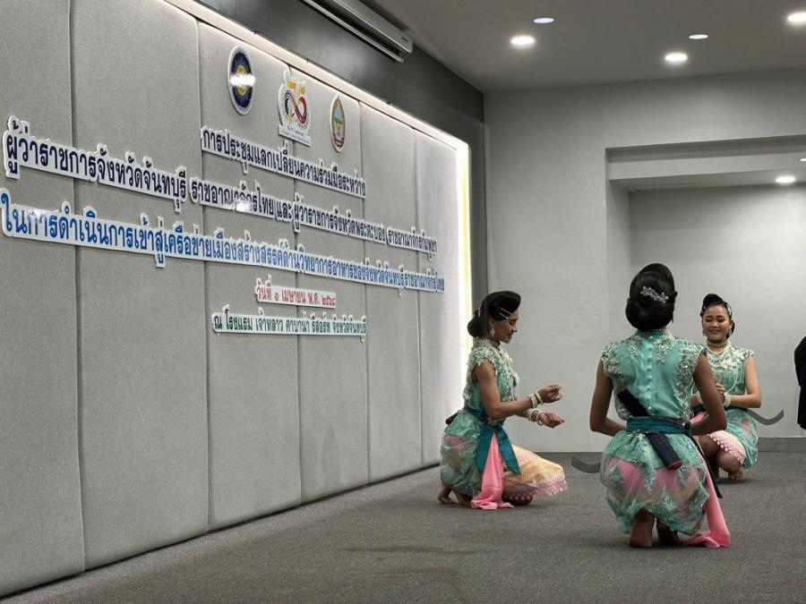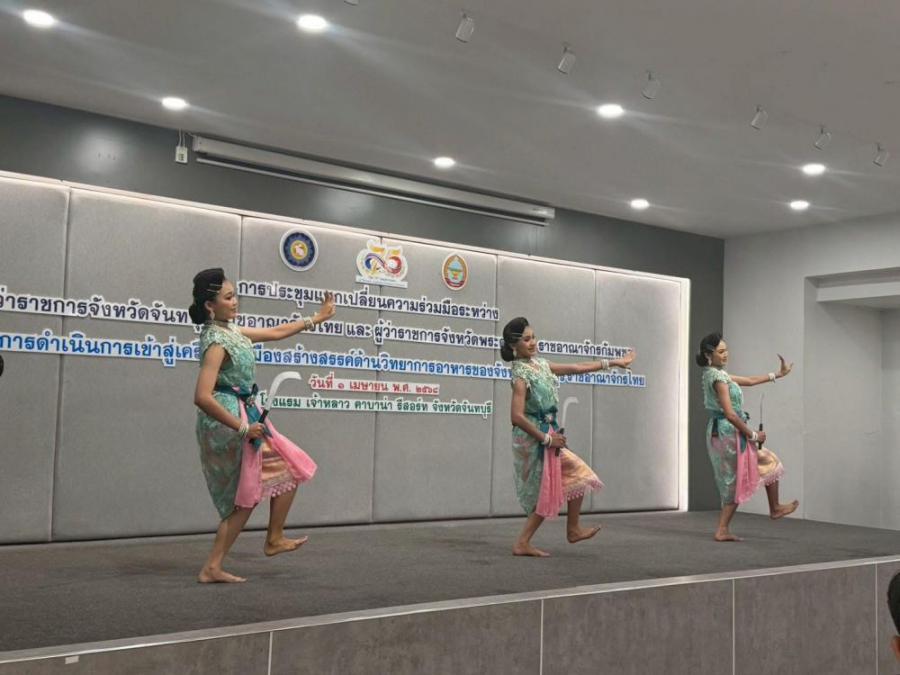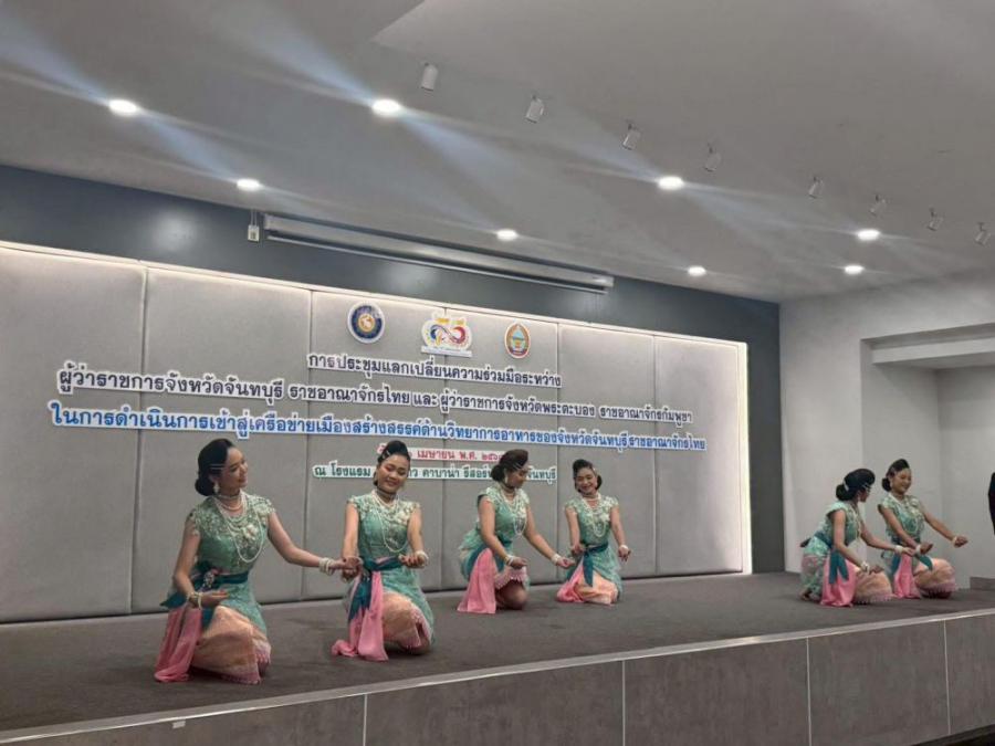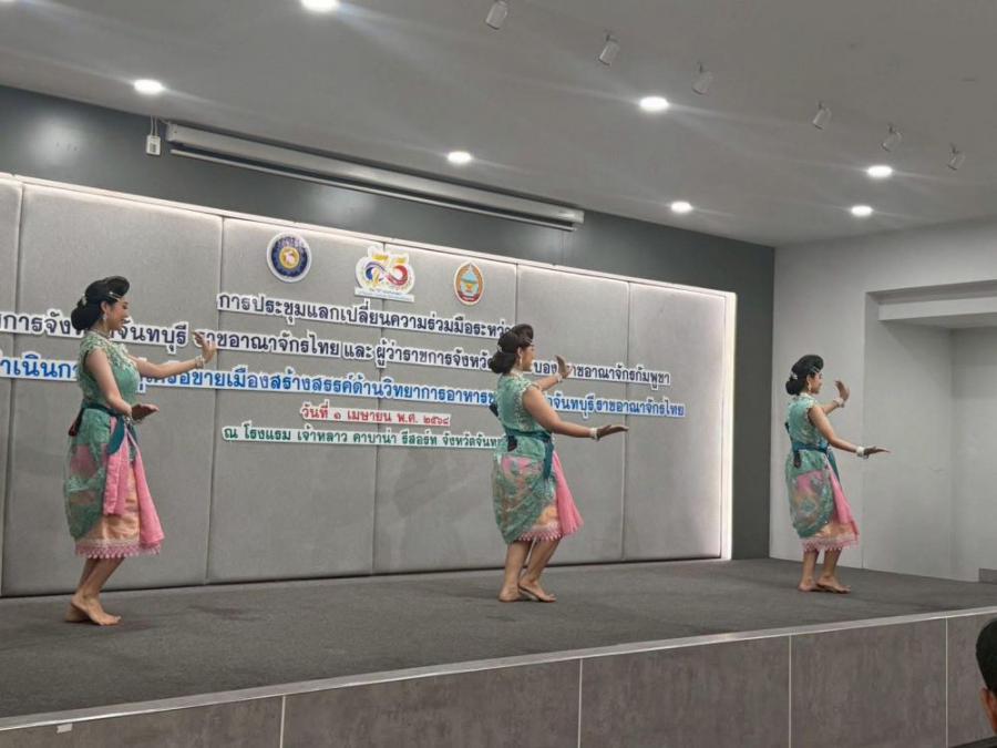 วิทยาลัยนาฏศิลปจันทบุรีเข้าร่วมการประชุมแลกเปลี่ยนความร่วมมือระหว่างผู้ว่าราชการจังหวัดจันทบุรี ราชอาณาจักรไทย และผู้ว่าราชการจังหวัดพระตะบอง ของ ราชอาณาจักรกัมพูชา ในการดำเนินการเข้าสู่เครือข่ายเมืองสร้างสรรค์ด้านวิทยาการอาหารของจังหวัดจันทบุรี ราชอาณาจักรไทย 1 เมษายน พศ 2568 ณ โรงแรมเจ้าหลาวคาบาน่า จังหวัดจันทบุรี S:0