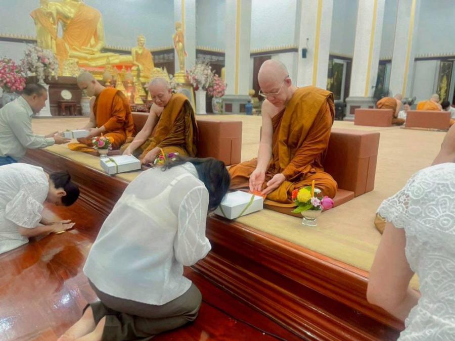 นางพรอุษา แก้วสว่าง ผู้อำนวยการวิทยาลัยนาฏศิลปจันทบุรีพร้อมด้วยคณะผู้บริหารเข้าร่วมงานโครงการส่งเสริมพระพุทธศาสนา เนื่องในเทศกาลวันวิสาขบูชา ณ วัดป่าคลองกุ้ง อำเภอเมือง จังหวัดจันทบุรี วันที่ 11 พฤษภาคม 2568 S:0