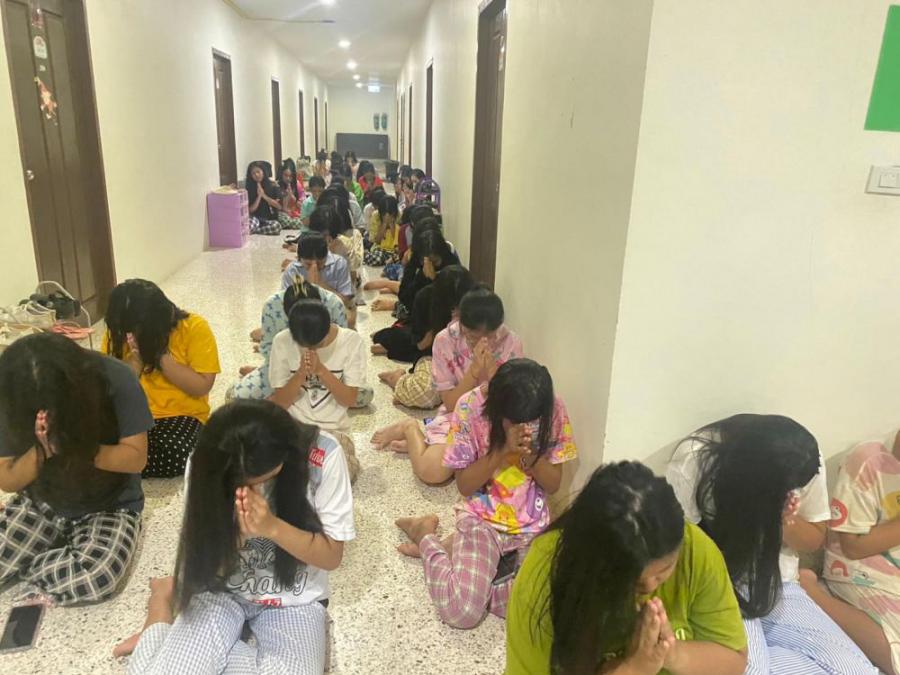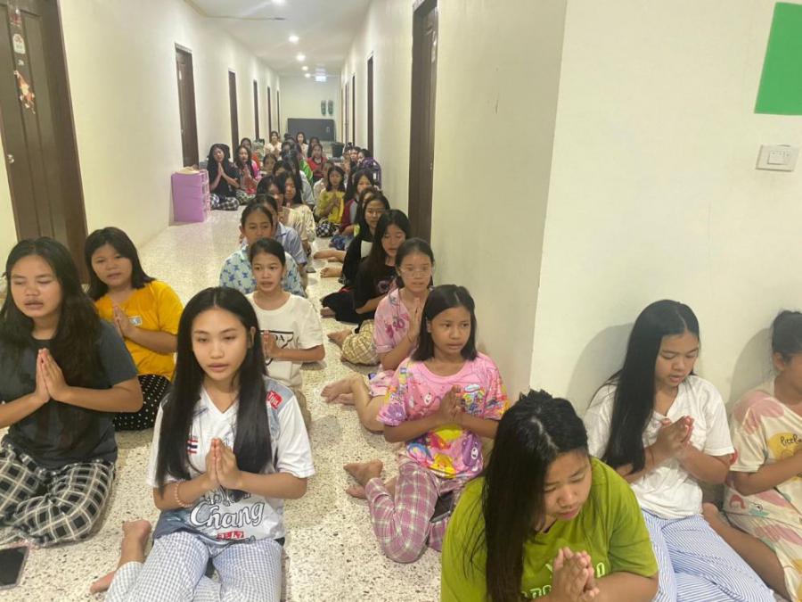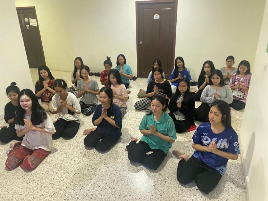 กิจกรรมสวดมนต์ของนักเรียนในหอพักหญิงของวิทยาลัยฯ