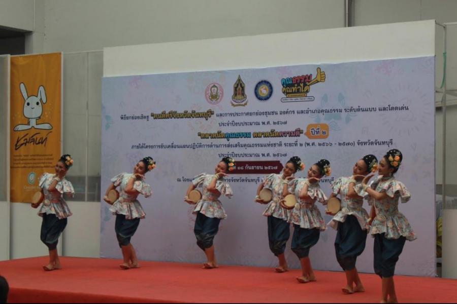 ขอแสดงความยินดีกับวิทยาลัยนาฎศิลปจันทบุรี ที่มีผลการประเมินองค์กร ประจำปิงบประมาณ พ.ศ.ศ. ๒๕๖๗ ระดับต้นแบบ ตามโครงการส่งเสริมชุมชน องค์กร อำเภอ และจังหวัดคุณธรรม ภายใต้แผนปฏิบัติการด้านการส่งเสริมคุณธรรมแห่งชาติ ระยะที่ ๒ (พ.ศ. ๒๕๖๖ - ๒๕๗๐) ให้ไว้ ณ วันที่ ๑๒ กันยายน ๒๕๖๗ ณ โถงแสงจันทร์ ศาลากลางจันหวัดจันทบุรี S:0