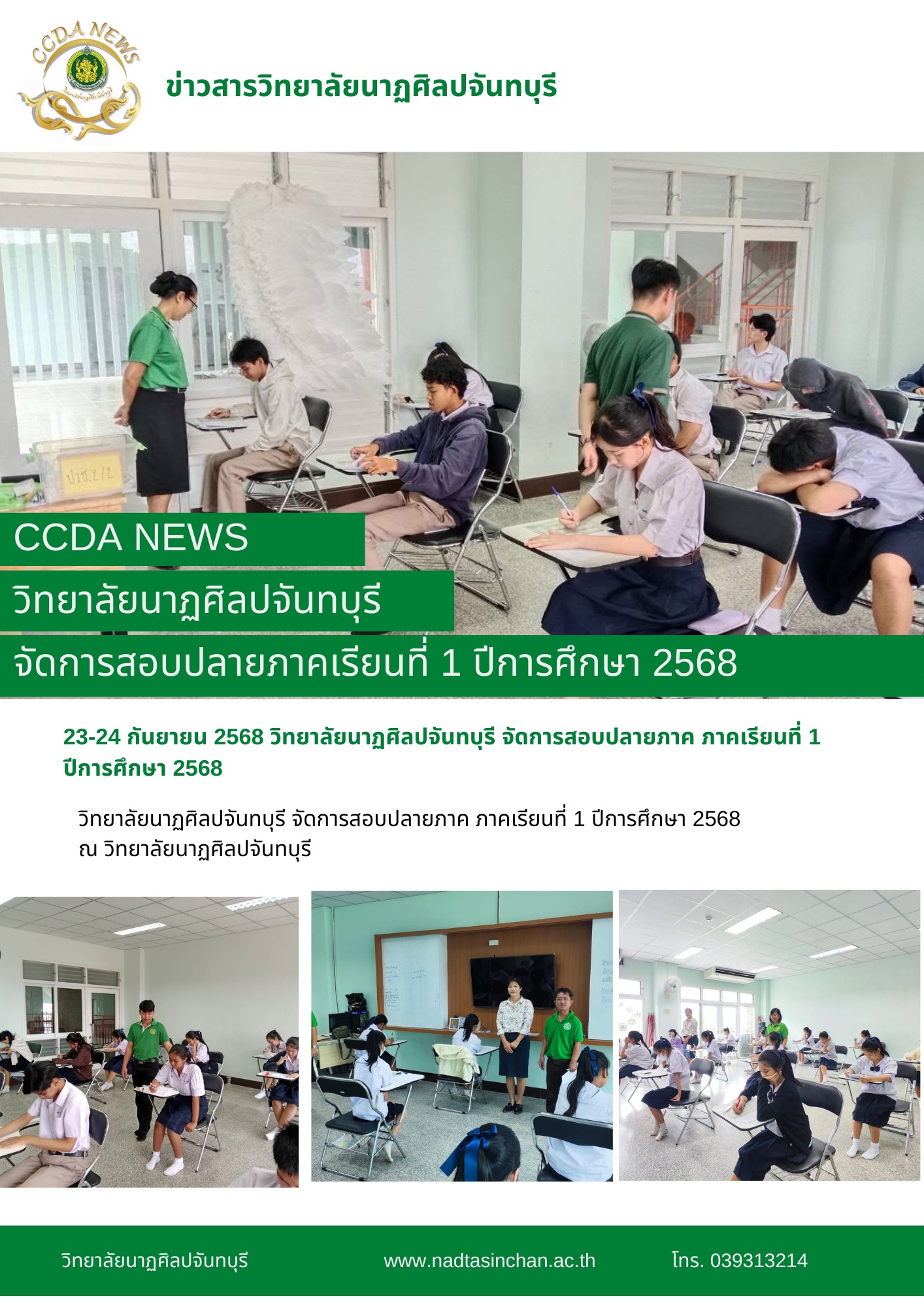 วิทยาลัยนาฏศิลปจันทบุรี จัดการสอบปลายภาค ภาคเรียนที่ 1 ปีการศึกษา 2568 ณ วิทยาลัยนาฏศิลปจันทบุรี