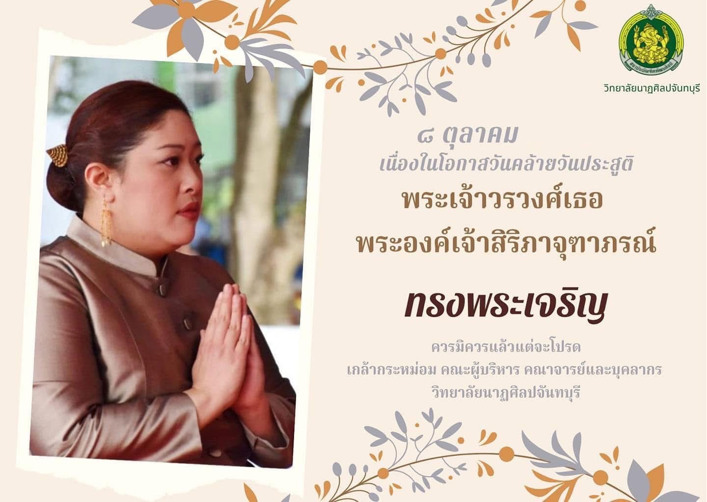 ?๘ ตุลาคม เนื่องในโอกาสวันคล้ายวันประสูติ พระเจ้าวรวงศ์เธอ พระองค์เจ้าสิริภาจุฑาภรณ์ ทรงพระเจริญ
