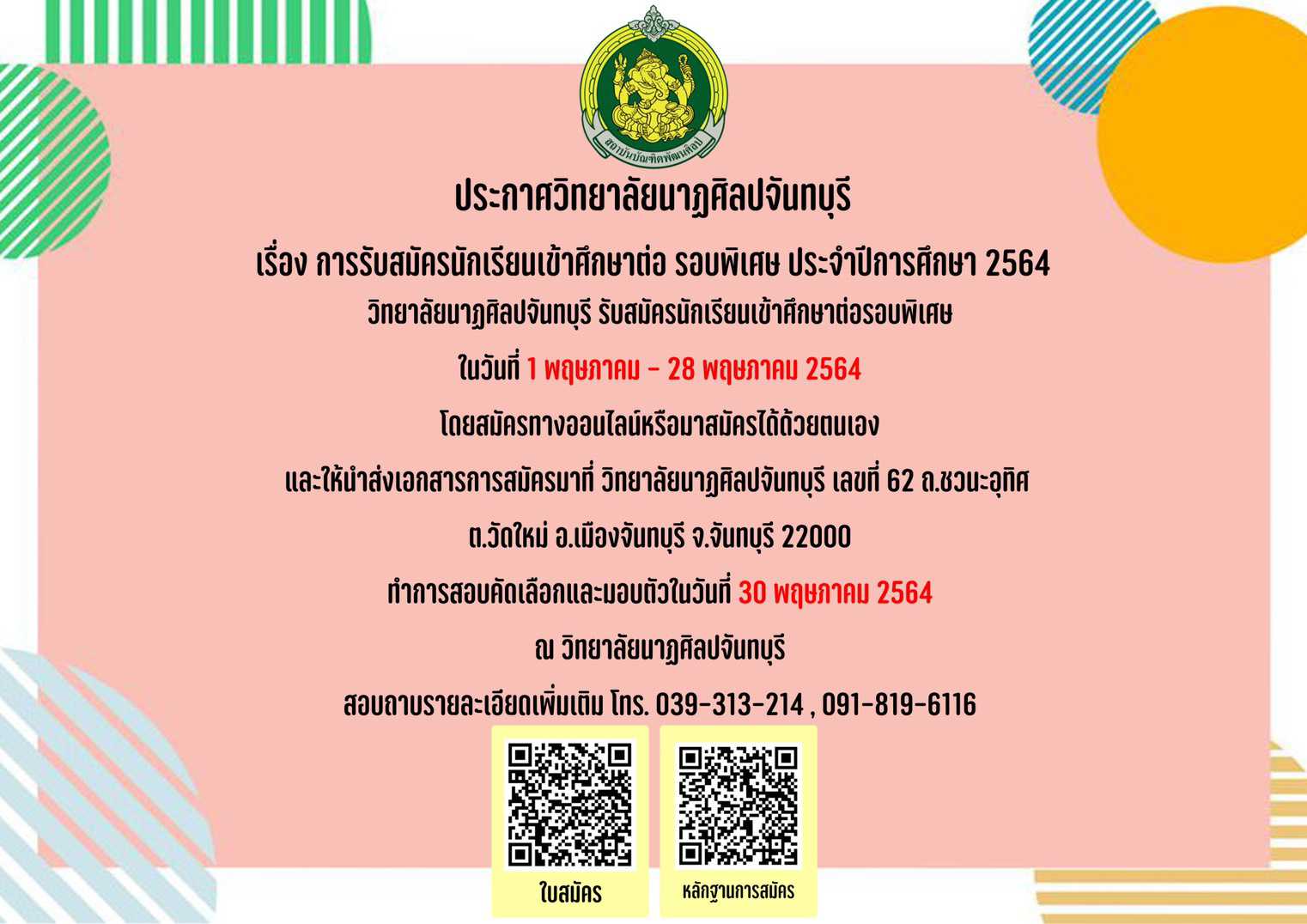 วิทยาลัยนาฏศิลปจันทบุรี รับสมัครนักเรียนเข้าศึกษาต่อรอบพิเศษ