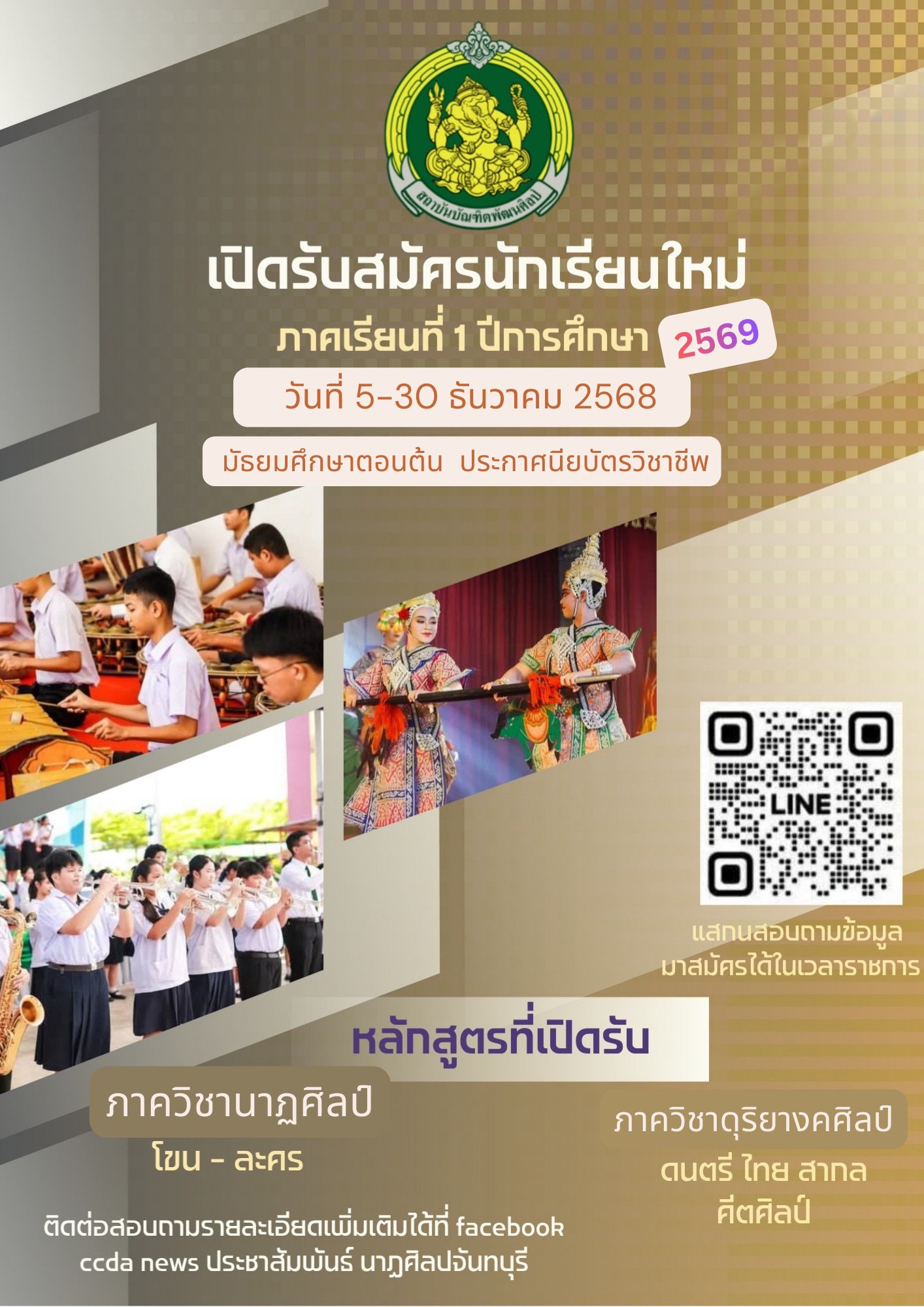 วิทยาลัยนาฏศิลปจันทบุรีประกาศรับสมัครนักเรียนเพื่อศึกษาต่อในระดับชั้นมัธยมศึกษาปีที่ 1 และ ประกาศนียบัตรวิชาชีพปีที่ 1 ปีการศึกษา 2569