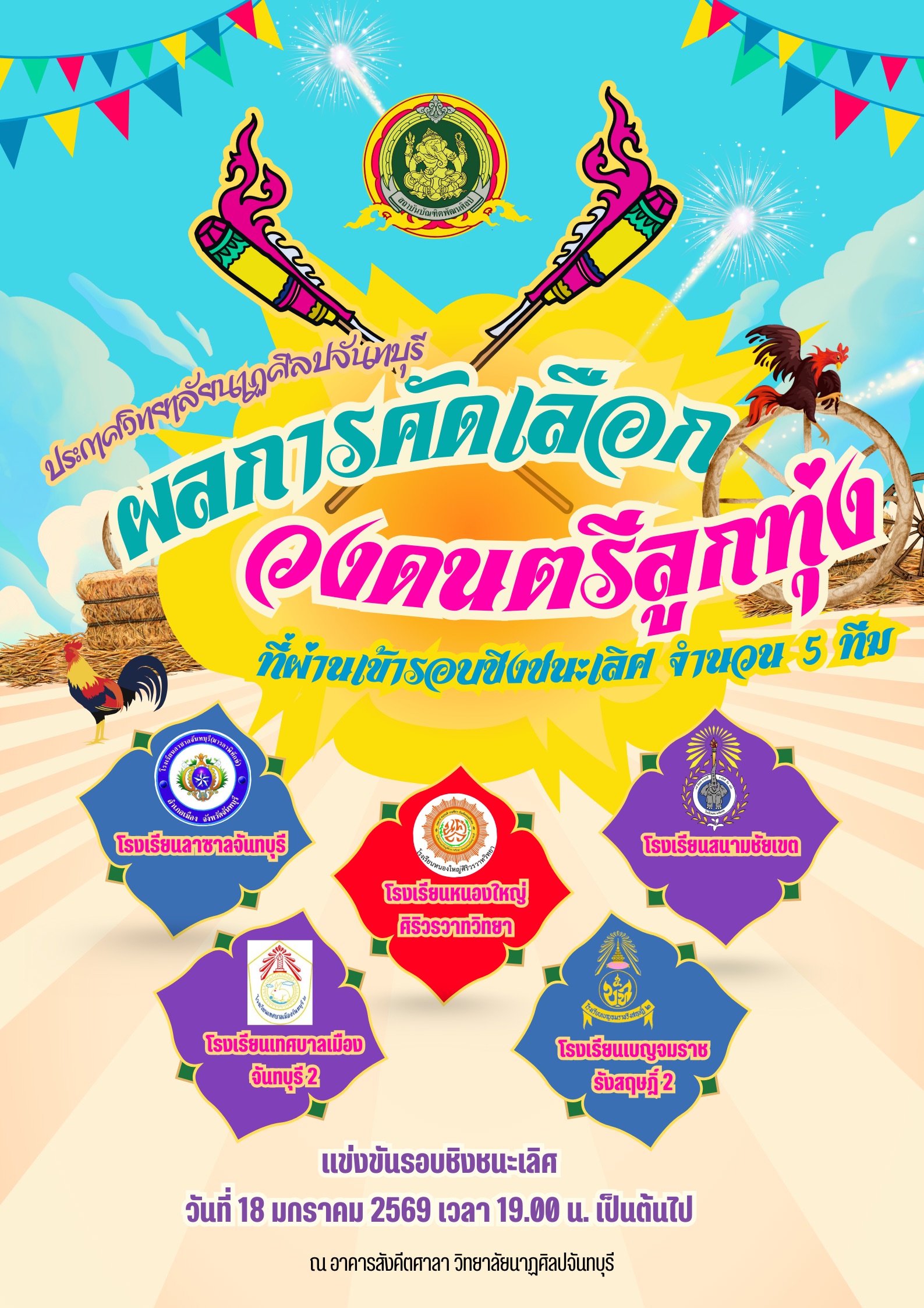?ประกาศวิทยาลัยนาฏศิลปจันทบุรี ผลการคัดเลือกวงดนตรีลูกทุ่งที่ผ่านเข้ารอบชิงชนะเลิศ จำนวน 5 ทีม