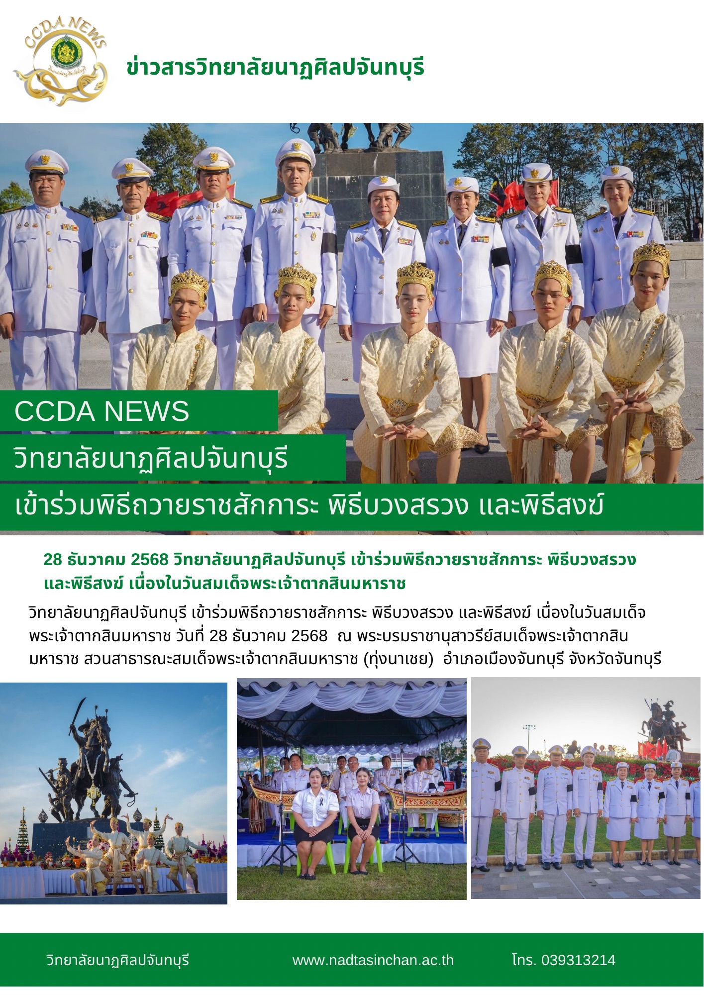 ?วิทยาลัยนาฏศิลปจันทบุรี เข้าร่วมพิธีถวายราชสักการะ พิธีบวงสรวง และพิธีสงฆ์ เนื่องในวันสมเด็จพระเจ้าตากสินมหาราช วันที่ 28 ธันวาคม 2568 ณ พระบรมราชานุสาวรีย์สมเด็จพระเจ้าตากสินมหาราช สวนสาธารณะสมเด็จ