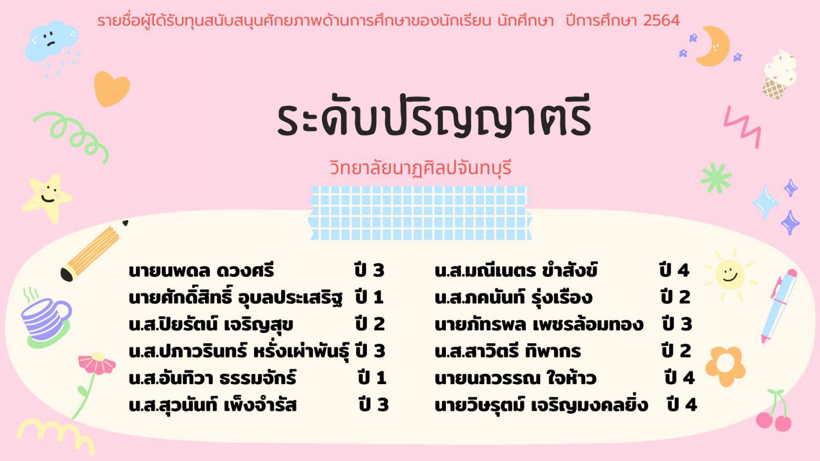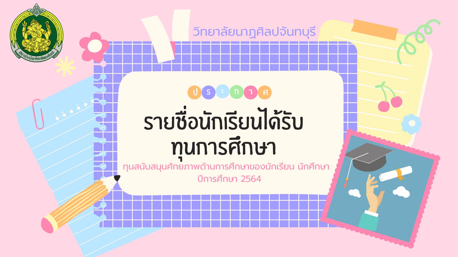 ประกาศรายชื่อนักเรียนได้รับทุนการศึกษา ทุนสนับสนุนศักยภาพด้านการศึกษาของนักเรียน นักศึกษา ปีการศึกษา 2564