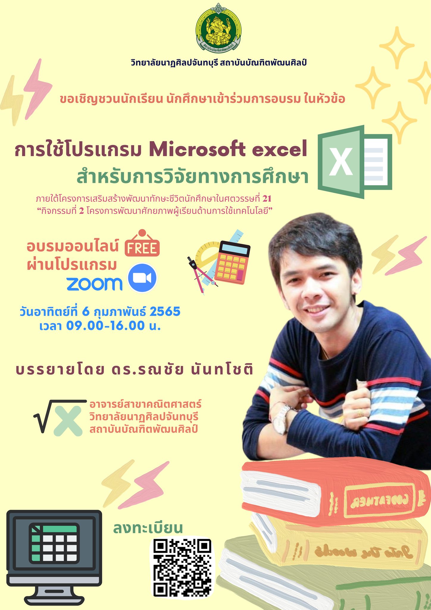 ขอเชิญชวนนักเรียน นักศึกษาวิทยาลัยนาฏศิลปจันทบุรี เข้าร่วมการอบรม "การสร้างตัวตนบนโลกออนไลน์"การใช้โปรแกรม Microsoft excel สำหรับการวิจัยทางการศึกษา"