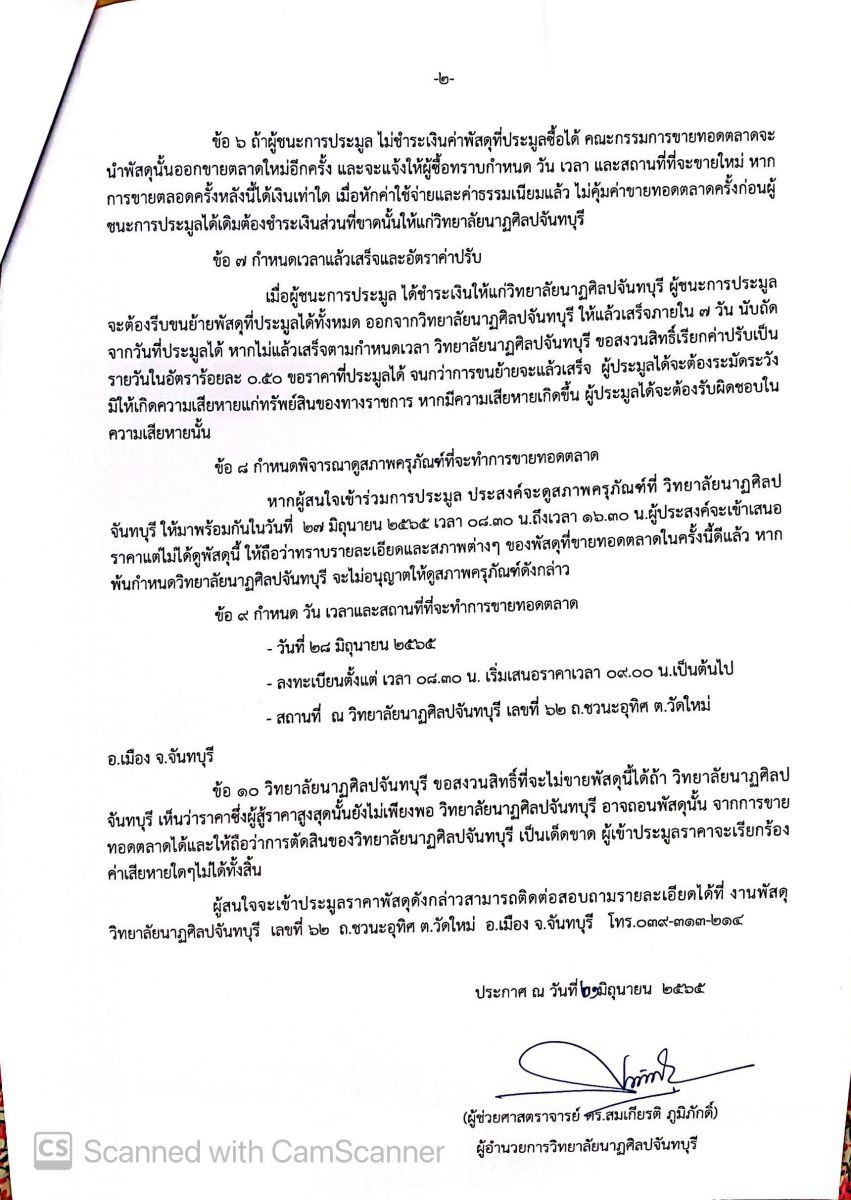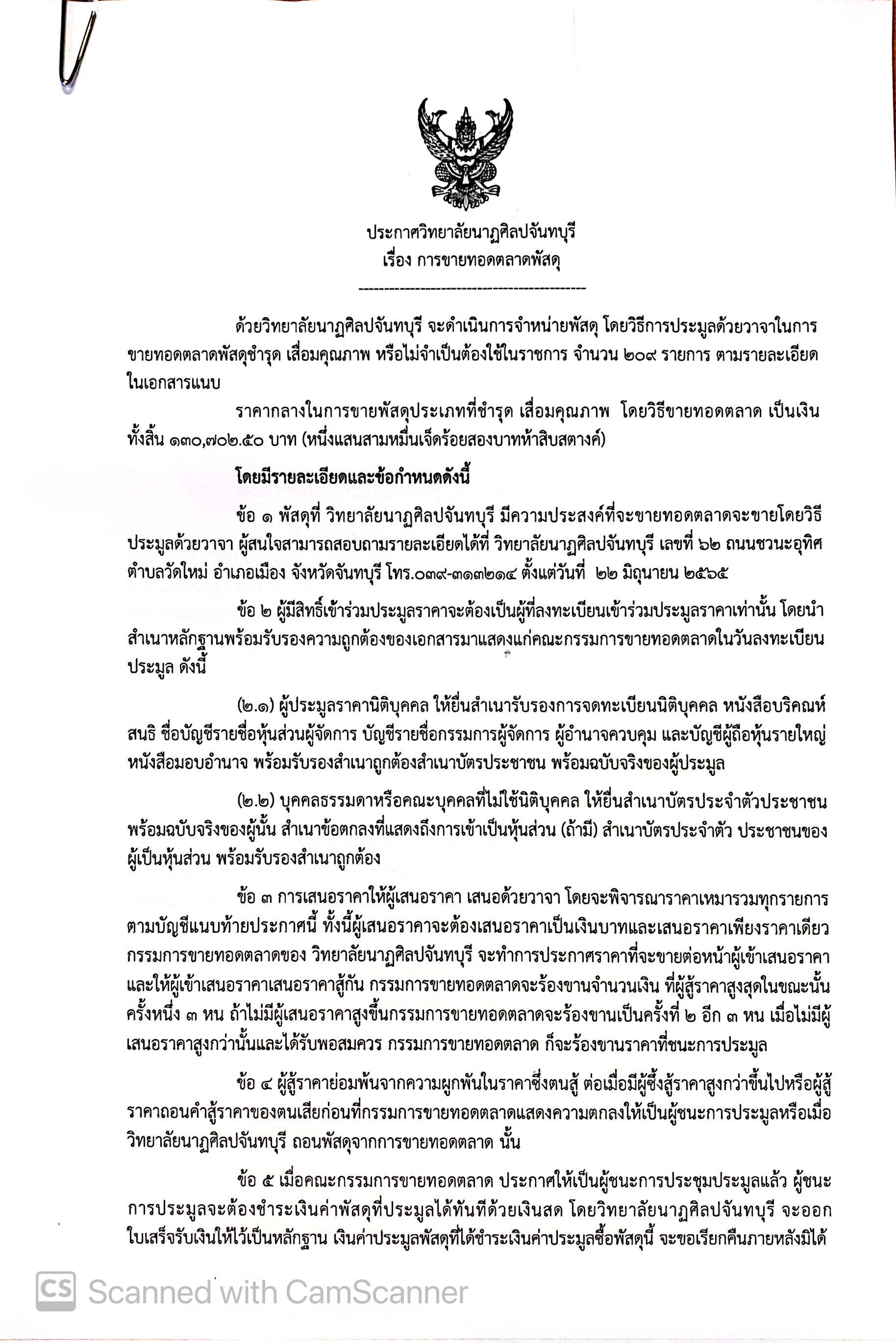 วิทยาลัยนาฏศิลปจันทบุรี จะดำเนินการจำหน่ายพัสดุ โดยวิธีการประมูลด้วยวาจาในการขายทอดตลาดพัสดุชำรุด