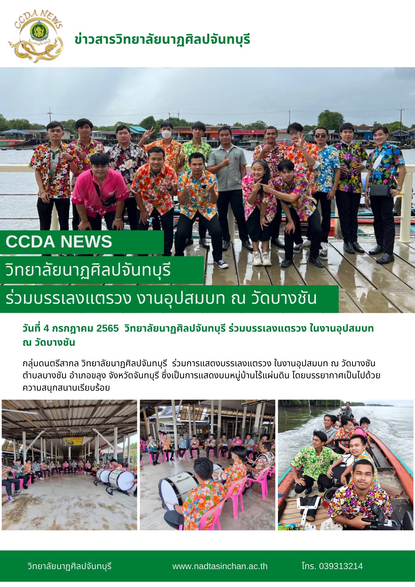 วันที่ 4 กรกฎาคม 2565  วิทยาลัยนาฏศิลปจันทบุรี ร่วมบรรเลงแตรวง ในงานอุปสมบท ณ วัดบางชัน  ต.บางชัน อ.ขลุง จ.จันทบุรี