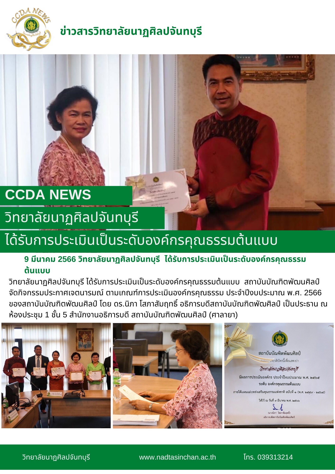 ?วิทยาลัยนาฏศิลปจันทบุรี ได้รับการประเมินเป็นระดับองค์กรคุณธรรมต้นแบบ เมื่อวันพฤหัสบดีที่ 9 มีนาคม 2566