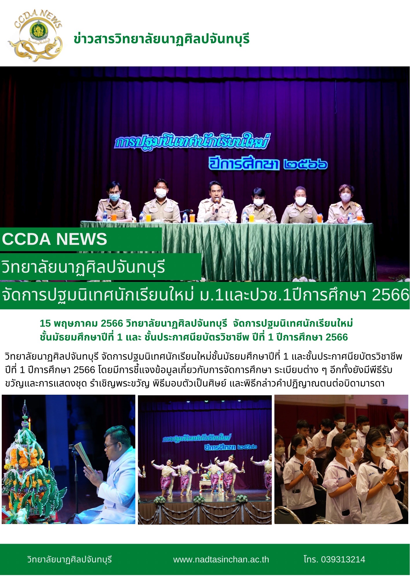 ?วิทยาลัยนาฏศิลปจันทบุรี จัดการปฐมนิเทศนักเรียนใหม่ ชั้นมัธยมศึกษาปีที่ 1 และ ชั้นประกาศนียบัตรวิชาชีพ ปีที่ 1 ปีการศึกษา 2566