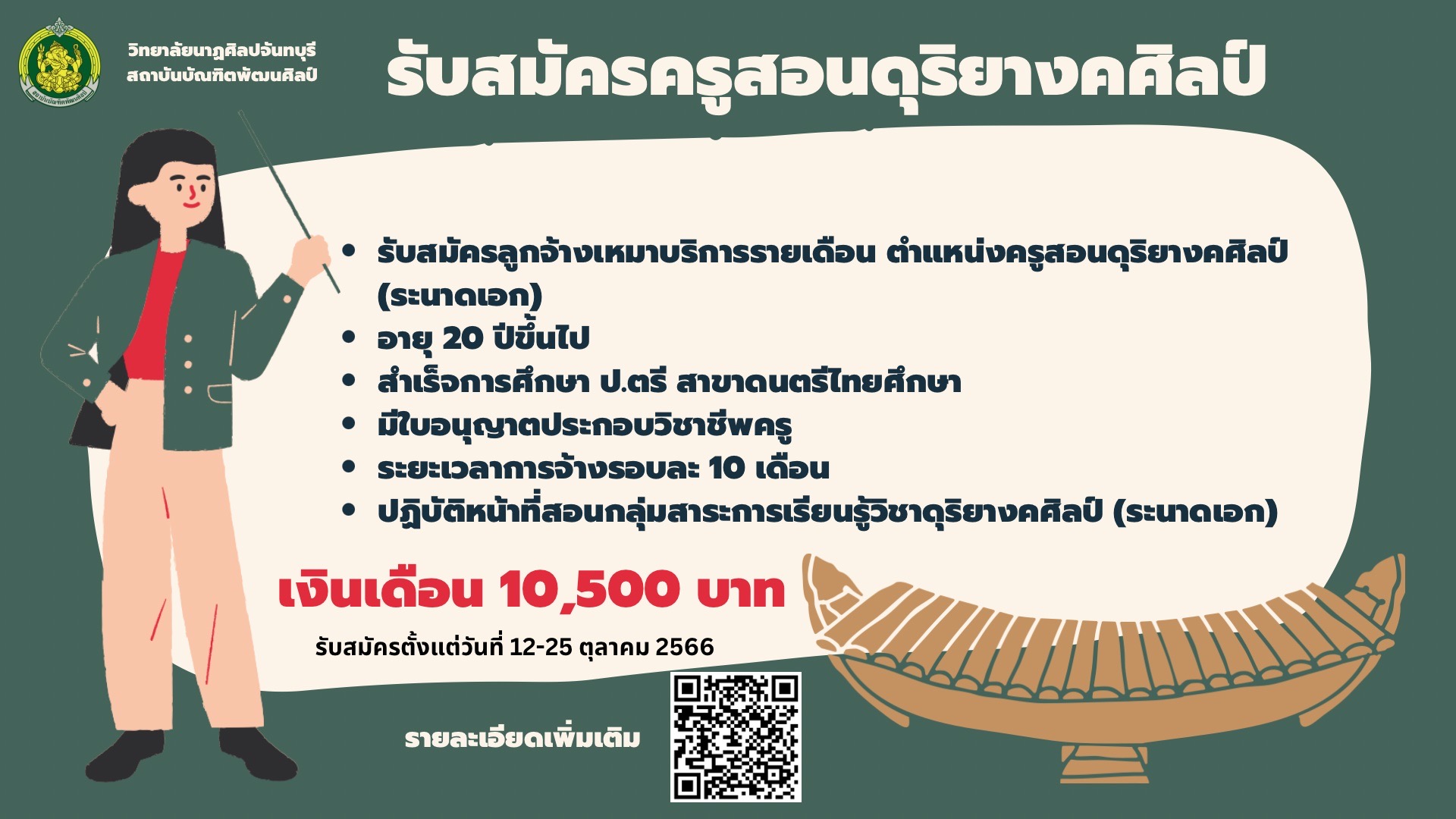 ?รับสมัครลูกจ้างเหมาบริการรายเดือน ตำแหน่งครูสอนดุริยางคศิลป์ (ระนาดเอก)