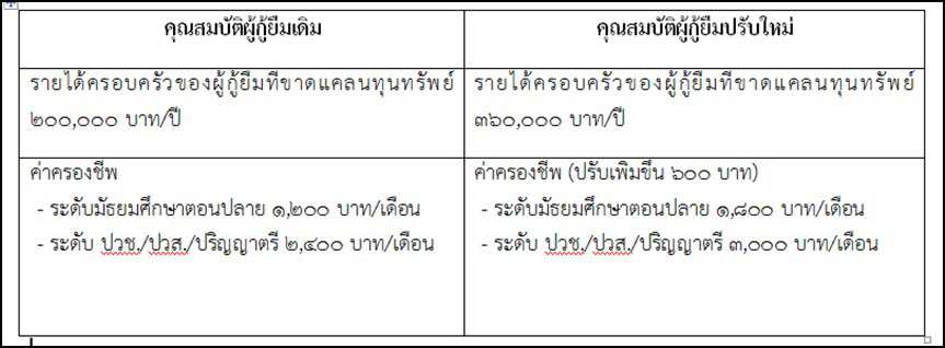 จากสถานการณ์การแพร่ระบาดของโรคติดเชื้อไวรัสโคโรนา 2019 (COVID-19) ซึ่งส่งผลกระทบต่อระบบเศรษฐกิจและค่าใช้จ่าย ในการดำรงชีพของประชาชนจำนวนมาก กองทุนขอยืนยันว่าผู้ปกครองที่ได้รับผลกระทบจากสถานการณ์ดังกล่าว ไม่ต้องเป็นกังวลว่าจะไม่มีเงินส่งให้ลูกหลานได้เรียน เนื่องจากกองทุนมีเงินเพียงพอให้ทุกคนได้กู้ยืมเรียนอย่างแน่นอน โดยในปีการศึกษา 2563 กองทุนได้ปรับเกณฑ์คุณสมบัติเฉพาะเกี่ยวกับรายได้ครอบครัวของผู้กู้ยืมที่ขาดแคลนทุนทรัพย์จากเดิมรายได้ไม่เกิน 200,000 บาท/ปี เป็นไม่เกิน 360,000 บาท/ปี อีกทั้ง กองทุนได้มีการปรับเพิ่มค่าครองชีพรายเดือนให้ผู้กู้ยืมทุกระดับการศึกษาอีกรายละ 600 บาท/เดือน ระดับมัธยมศึกษาตอนปลาย จากเดิม 1,200 บาท เป็น 1,800 บาท/เดือน ส่วนระดับ ปวช./ปวส./ปริญญาตรี จากเดิม 2,400 บาท เป็น 3,000 บาท/เดือน