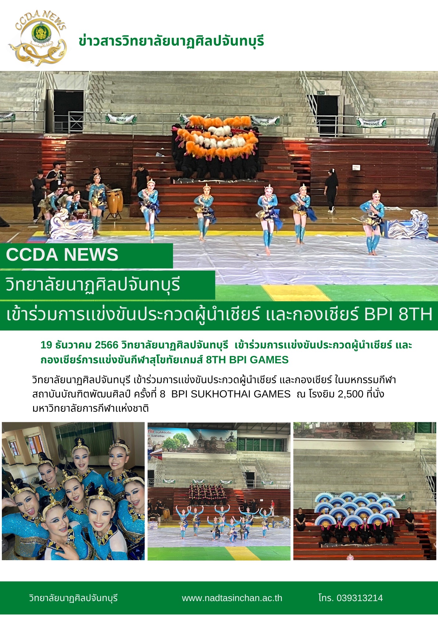 วิทยาลัยนาฏศิลปจันทบุรี เข้าร่วมการเเข่งขันประกวดผู้นำเชียร์ และกองเชียร์ ในมหกรรมกีฬาสถาบันบัณฑิตพัฒนศิลป์ ครั้งที่ 8 BPI SKHOTHAI GAMES ณ โรงยิม 2,500 ที่นั่ง มหาวิทยาลัยการกีฬาเเห่งชาติ วันที่ 19
