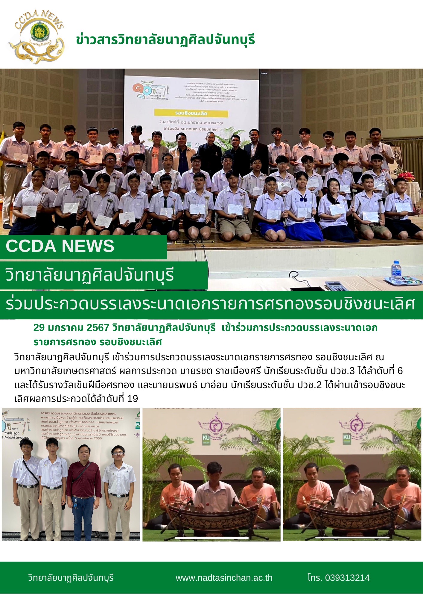 วิทยาลัยนาฏศิลปจันทบุรี เข้าร่วมการประกวดบรรเลงระนาดเอกรายการศรทอง รอบชิงชนะเลิศ ณ มหาวิทยาลัยเกษตรศาสตร์