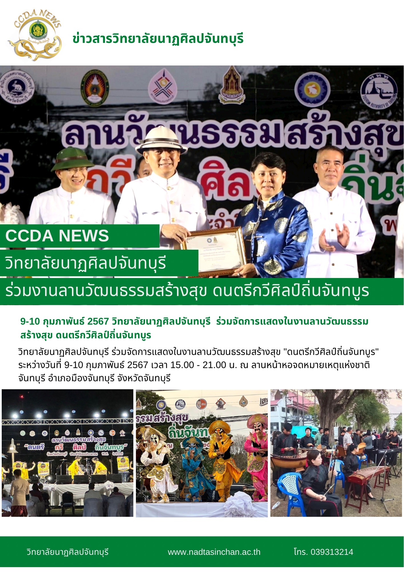 ?วิทยาลัยนาฏศิลปจันทบุรี ร่วมจัดการแสดงในงานลานวัฒนธรรมสร้างสุข "ดนตรีกวีศิลป์ถิ่นจันทบูร" ระหว่างวันที่ ๙-๑๐ กุมภาพันธ์ ๒๕๖๗