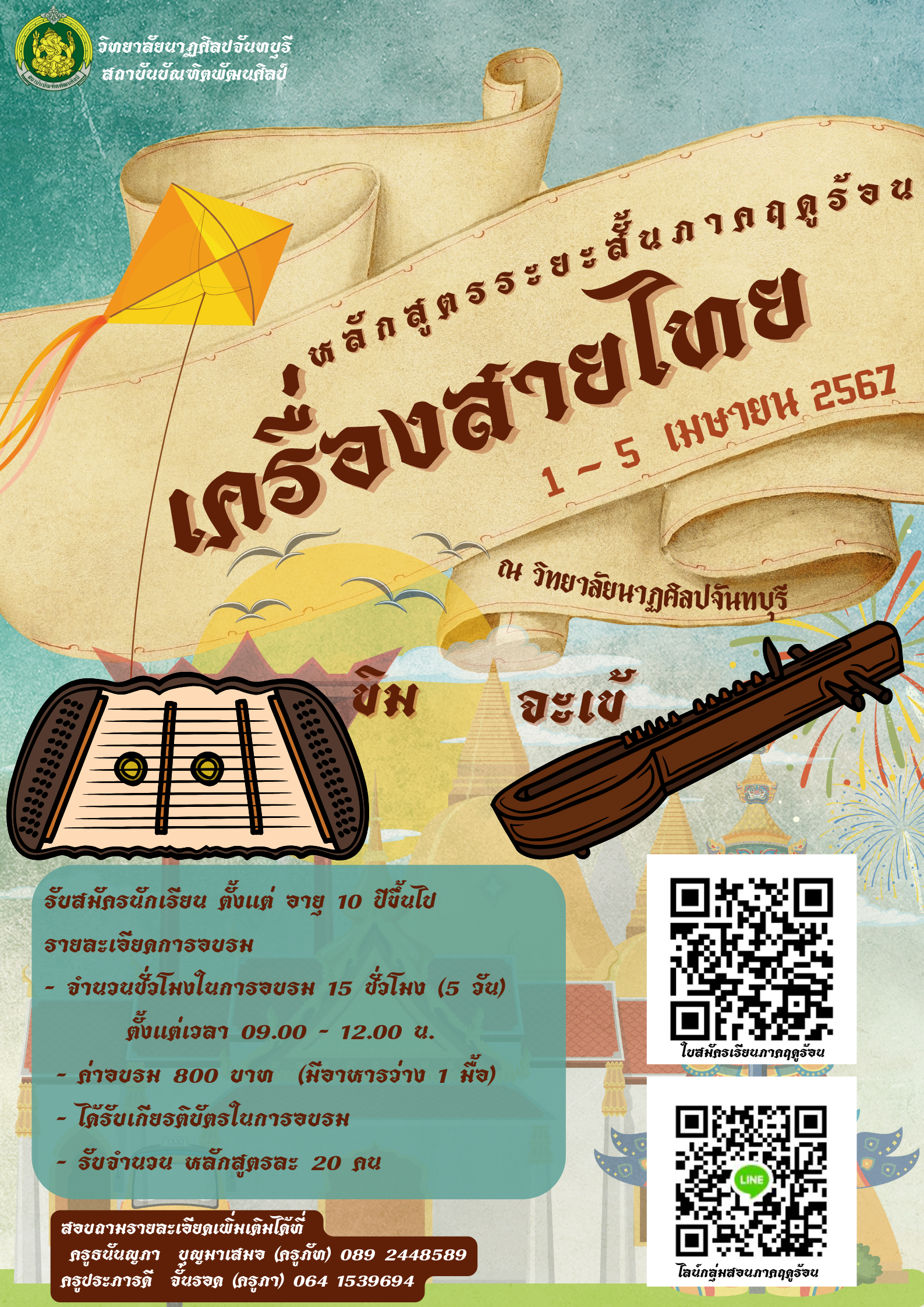 โครงการหลักสูตรระยะสั้นภาคฤดูร้อนเครื่องสายไทย (ขิม, จะเข้) วันที่ ๑ - ๕ เมษายน ๒๕๖๗ ณ วิทยาลัยนาฏศิลปจันทบุรี
