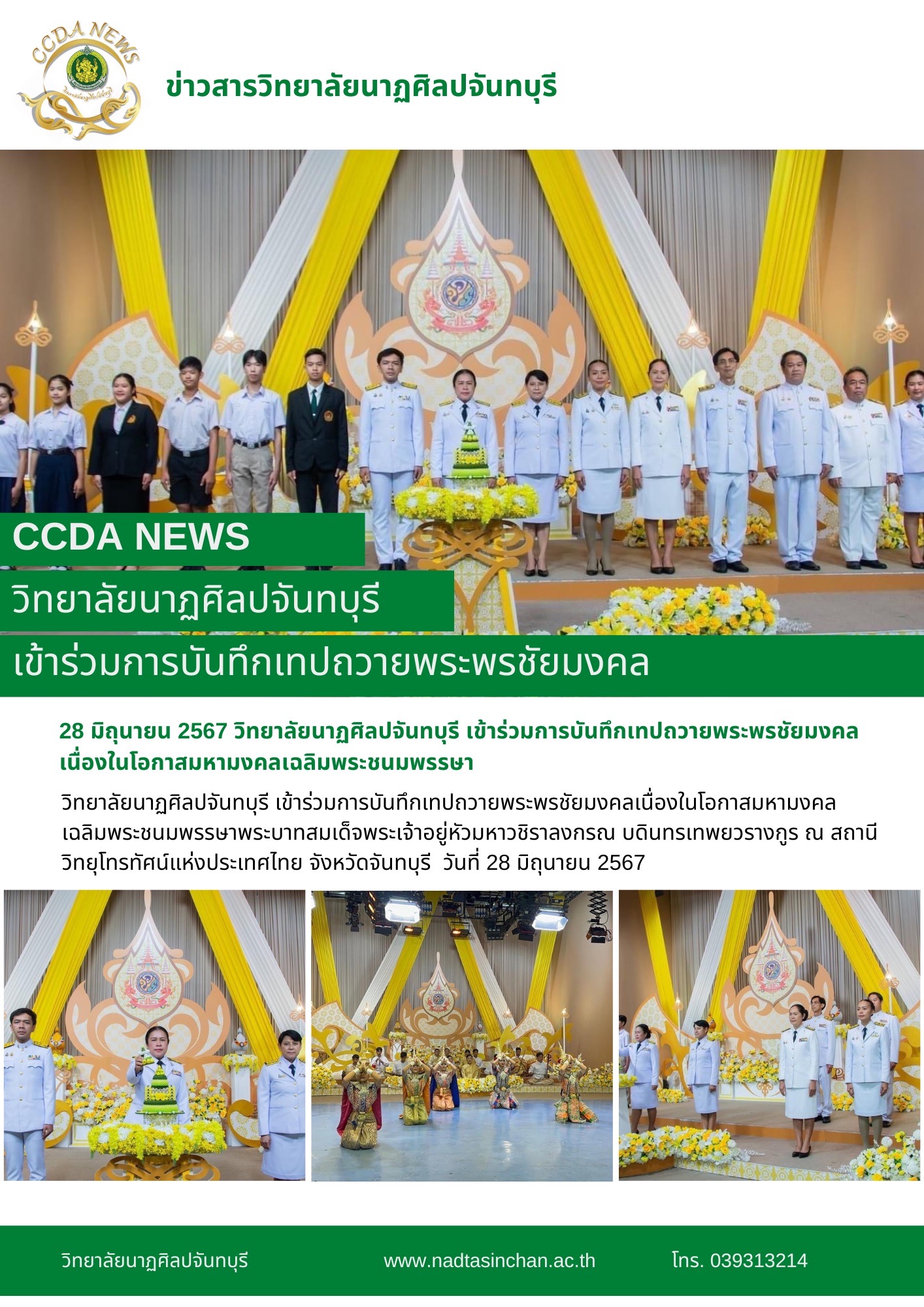 วิทยาลัยนาฏศิลปจันทบุรี เข้าร่วมการบันทึกเทปถวายพระพรชัยมงคลเนื่องในโอกาสมหามงคลเฉลิมพระชนมพรรษาพระบาทสมเด็จพระเจ้าอยู่หัวมหาวชิราลงกรณ บดินทรเทพยวรางกูร ณ สถานีวิทยุโทรทัศน์แห่งประเทศไทย จังหวัดจันทบุรี วันที่ 28 มิถุนายน 2567