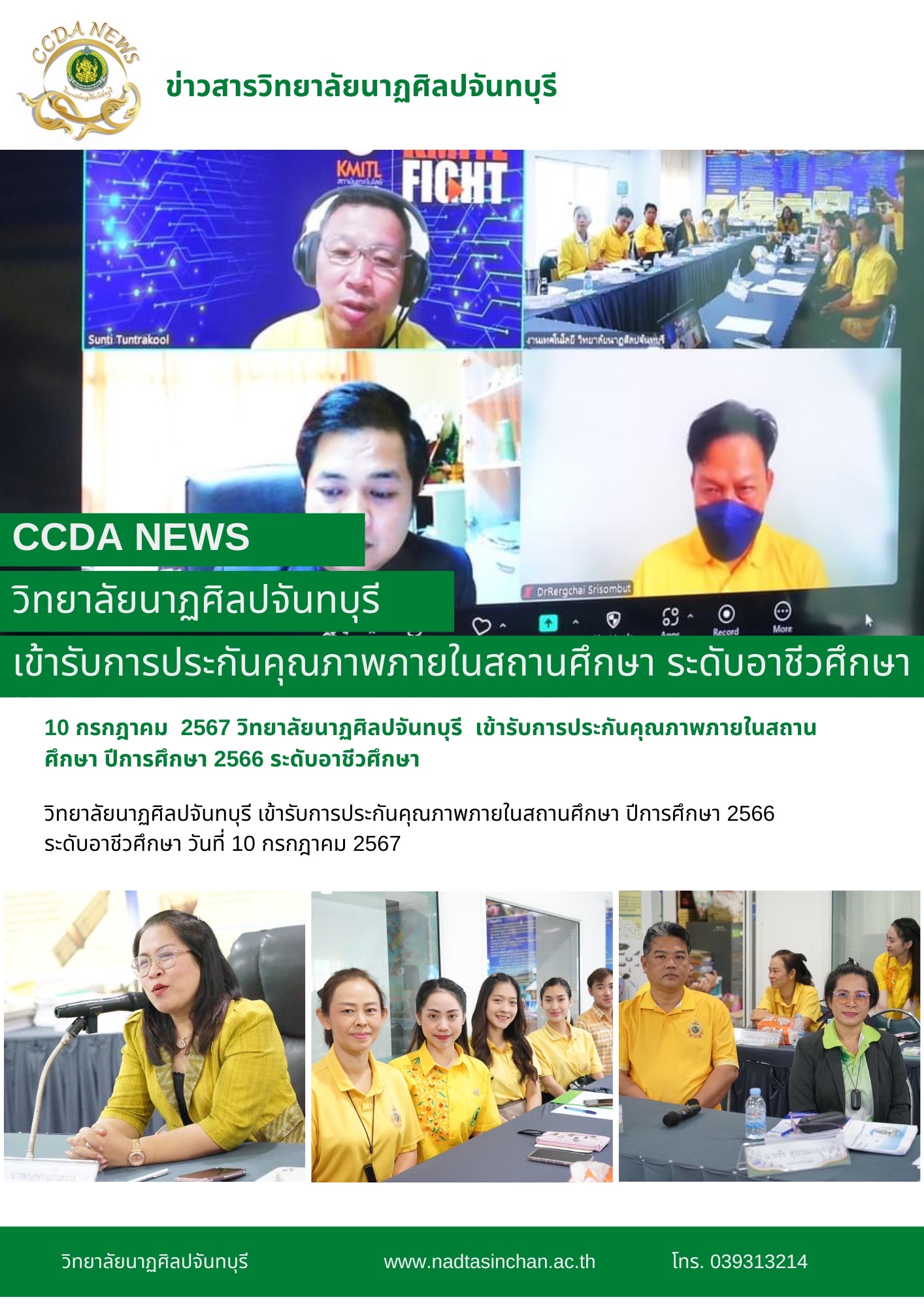 วิทยาลัยนาฏศิลปจันทบุรี เข้ารับการประกันคุณภาพภายในสถานศึกษา ปีการศึกษา 2566 ระดับอาชีวศึกษา วันที่ 10 กรกฎาคม 2567