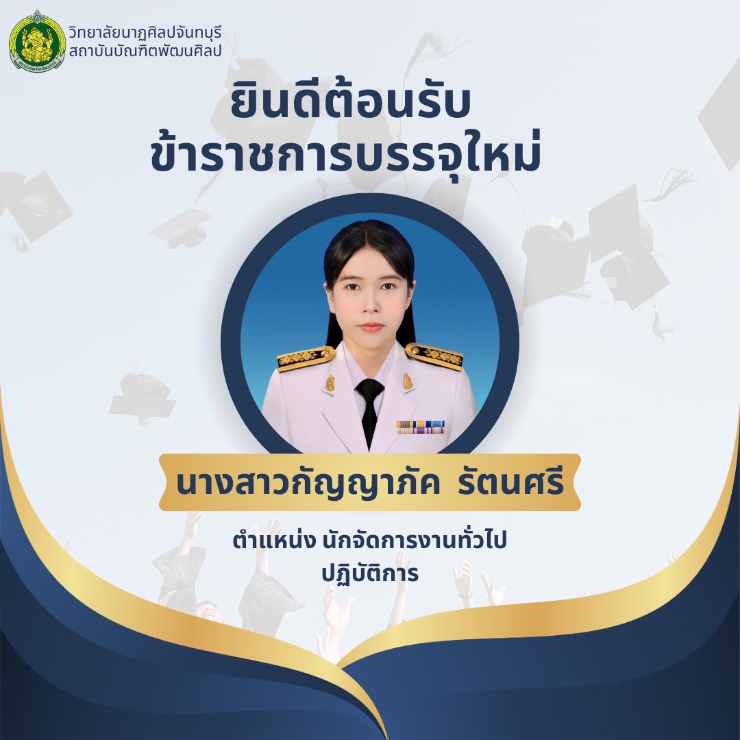 วิทยาลัยนาฏศิลปจันทบุรี สถาบันบัณฑิตพัฒนศิลป์ ยินดีต้อนรับข้าราชการบรรจุใหม่  นางสาวกัญญาภัค รัตนศรี ตำแหน่ง นักจัดการงานทั่วไปปฏิบัติการ