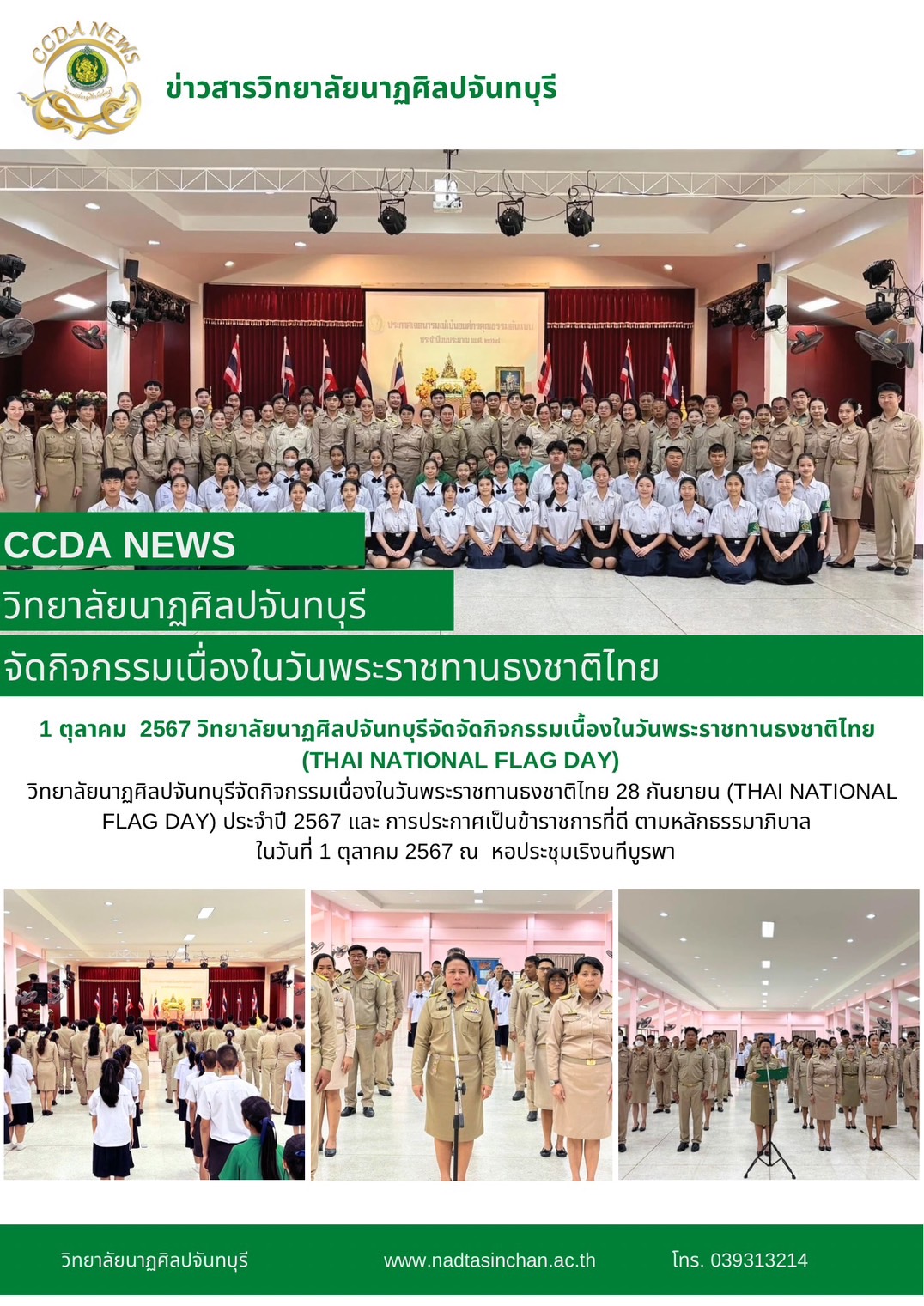 วิทยาลัยนาฏศิลปจันทบุรีจัดกิจกรรมเนื่องในวันพระราชทานธงชาติไทย 28 กันยายน (Thai National Flag Day) ประจำปี 2567 และ การประกาศเป็นข้าราชการที่ดี ตามหลักธรรมาภิบาล