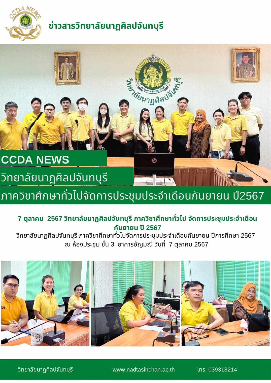 วิทยาลัยนาฏศิลปจันทบุรี ภาควิชาศึกษาทั่วไปจัดการประชุมประจำเดือนกันยายน ปีการศึกษา 2567 ณ ห้องประชุม ชั้น 3 อาคารอัญมณี วันที่ 7 ตุลาคม 2567