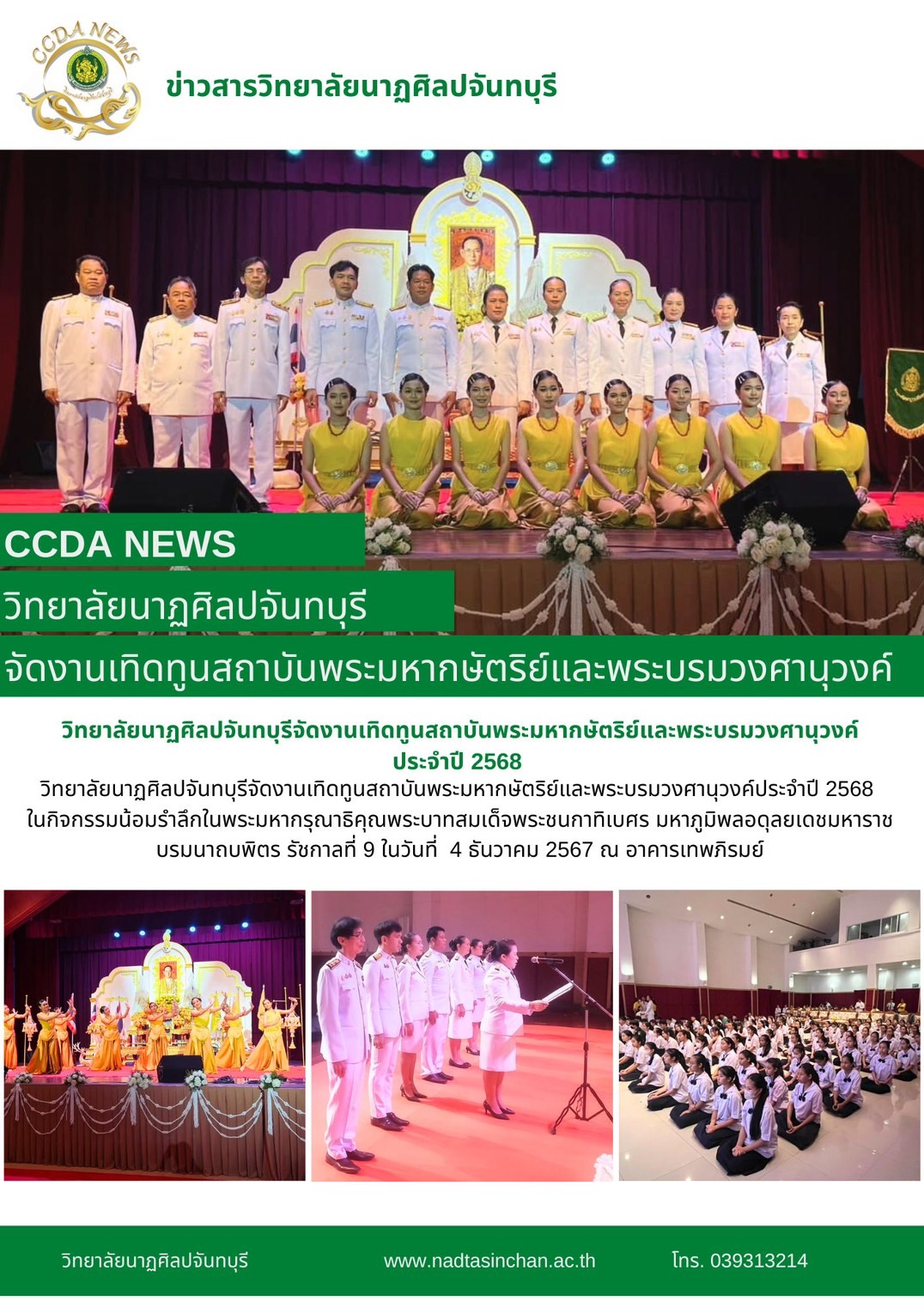 วิทยาลัยนาฏศิลปจันทบุรีจัดงานเทิดทูนสถาบันพระมหากษัตริย์และพระบรมวงศานุวงค์ประจำปี 2568 ในกิจกรรมน้อมรำลึกในพระมหากรุณาธิคุณพระบาทสมเด็จพระชนกาทิเบศร มหาภูมิพลอดุลยเดชมหาราช บรมนาถบพิตร รัชกาลที่ 9