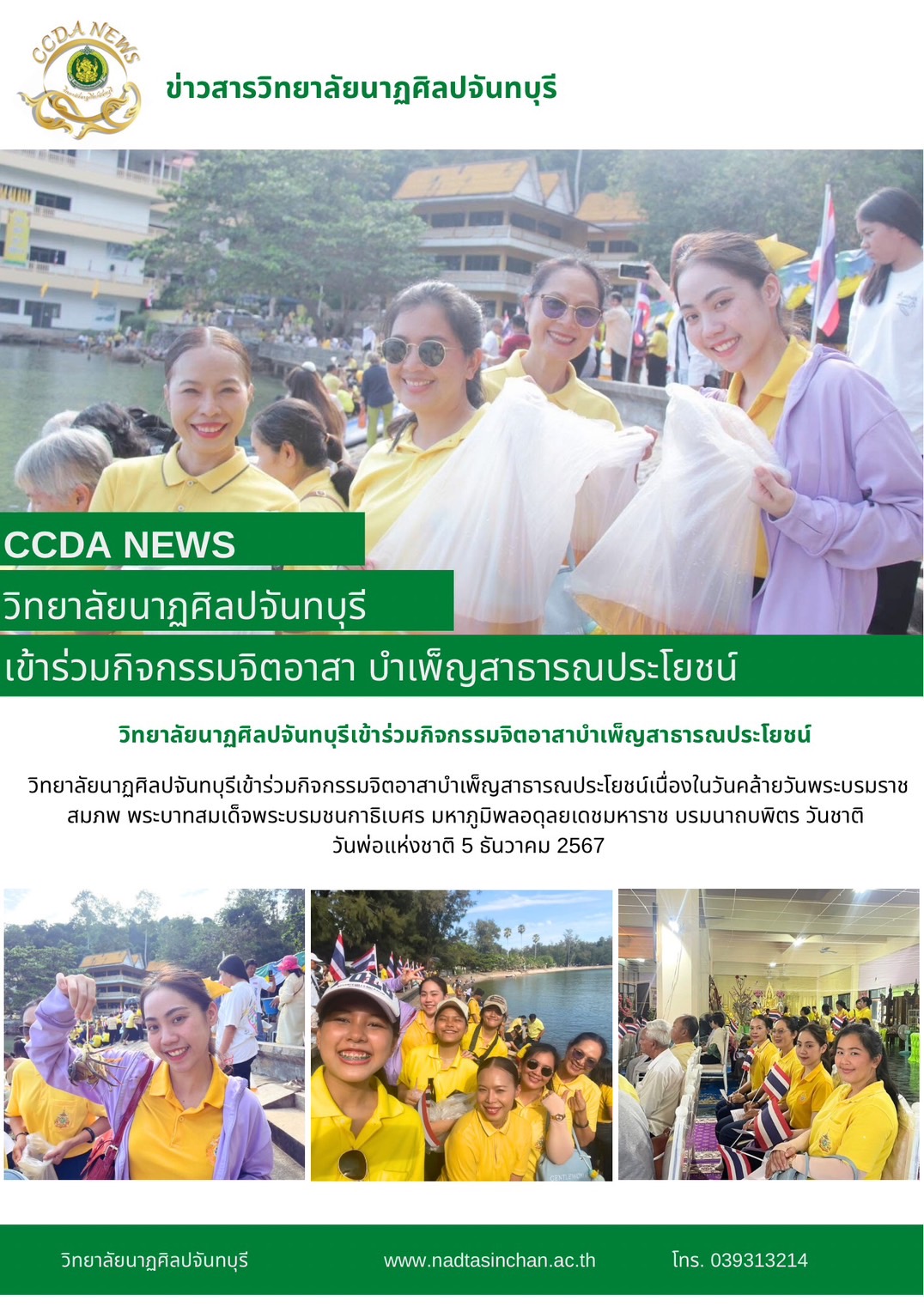 วิทยาลัยนาฏศิลปจันทบุรีเข้าร่วมกิจกรรมจิตอาสาบำเพ็ญสาธารณประโยชน์เนื่องในวันคล้ายวันพระบรมราชสมภพ พระบาทสมเด็จพระบรมชนกาธิเบศร มหาภูมิพลอดุลยเดชมหาราช บรมนาถบพิตร วันชาติ วันพ่อแห่งชาติ 5 ธันวาคม 2567