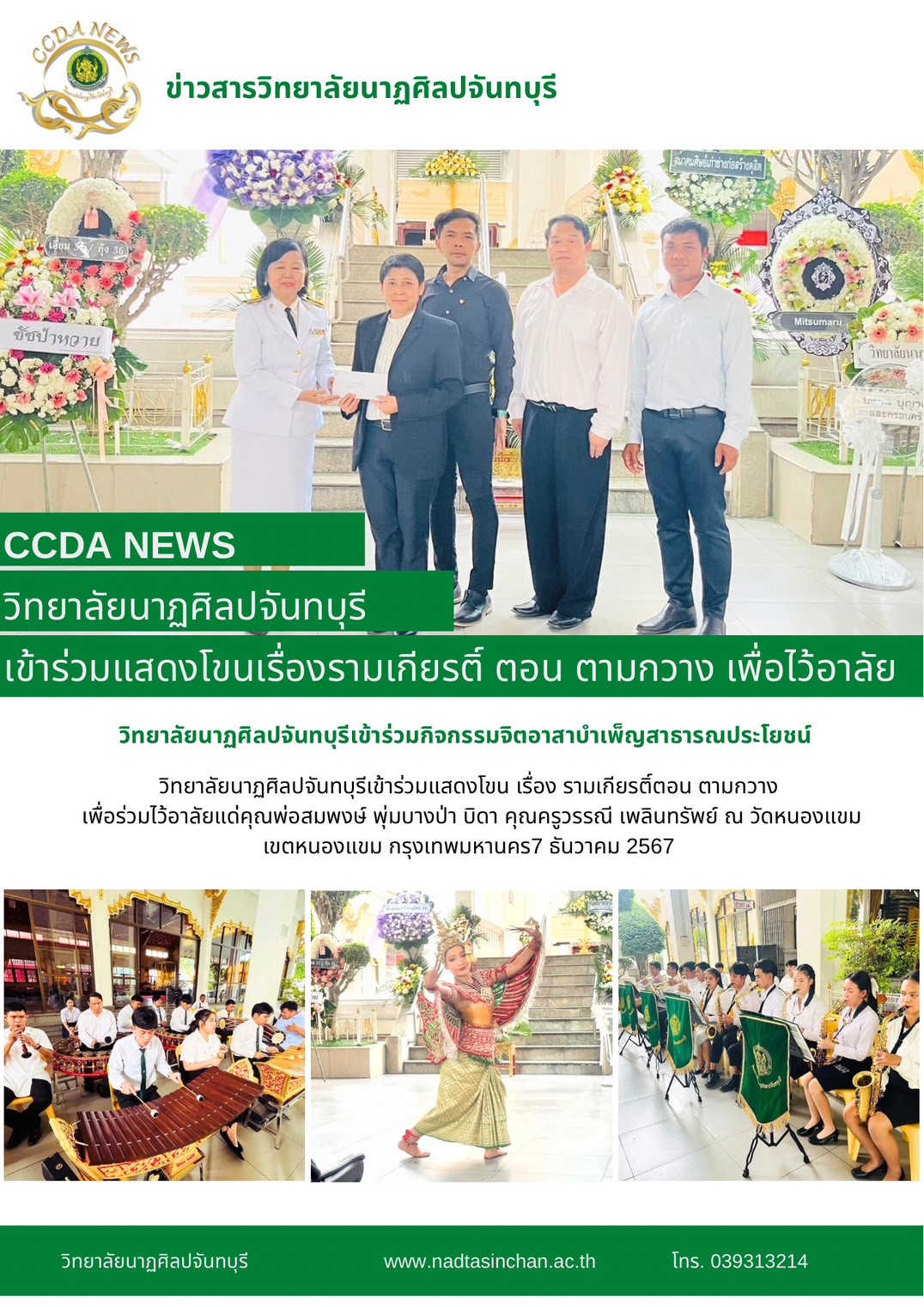 วิทยาลัยนาฏศิลปจันทบุรีร่วมแสดงโขน เรื่อง รามเกียรติ์ตอน ตามกวาง เพื่อร่วมไว้อาลัยแด่คุณพ่อสมพงษ์ พุ่มบางป่า บิดาคุณครูวรรณี เพลินทรัพย์ ณ วัดหนองแขม เขตหนองแขม กรุงเทพมหานคร 7 ธันวาคม 2567