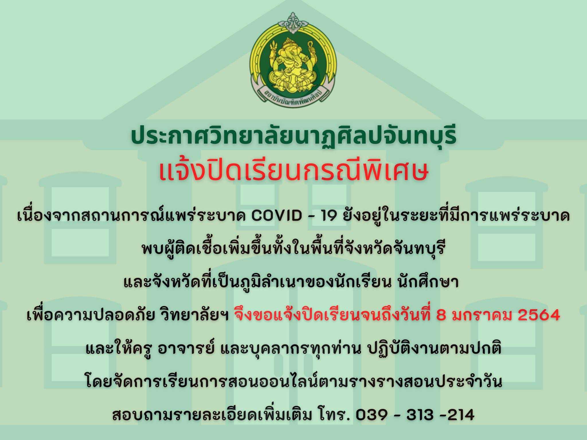 ประกาศวิทยาลัยนาฏศิลปจันทบุรี #แจ้งปิดเรียนกรณีพิเศษ