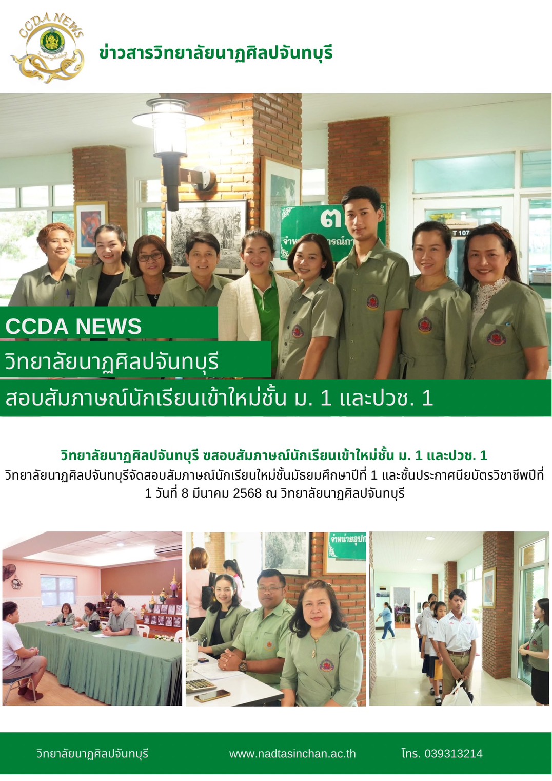 วิทยาลัยนาฏศิลปจันทบุรีจัดสอบสัมภาษณ์นักเรียนใหม่ชั้นมัธยมศึกษาปีที่ 1 และชั้นประกาศนียบัตรวิชาชีพปีที่ 1 วันที่ 8 มีนาคม 2568 ณ วิทยาลัยนาฏศิลปจันทบุรี