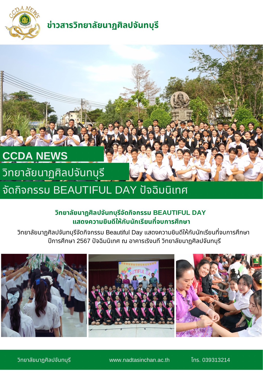 วิทยาลัยนาฏศิลปจันทบุรีจัดกิจกรรม Beautiful Day แสดงความยินดีให้กับนักเรียนที่จบการศึกษา ปีการศึกษา 2567 ปัจฉิมนิเทศ ณ อาคารเริงนที วิทยาลัยนาฏศิลปจันทบุรี
