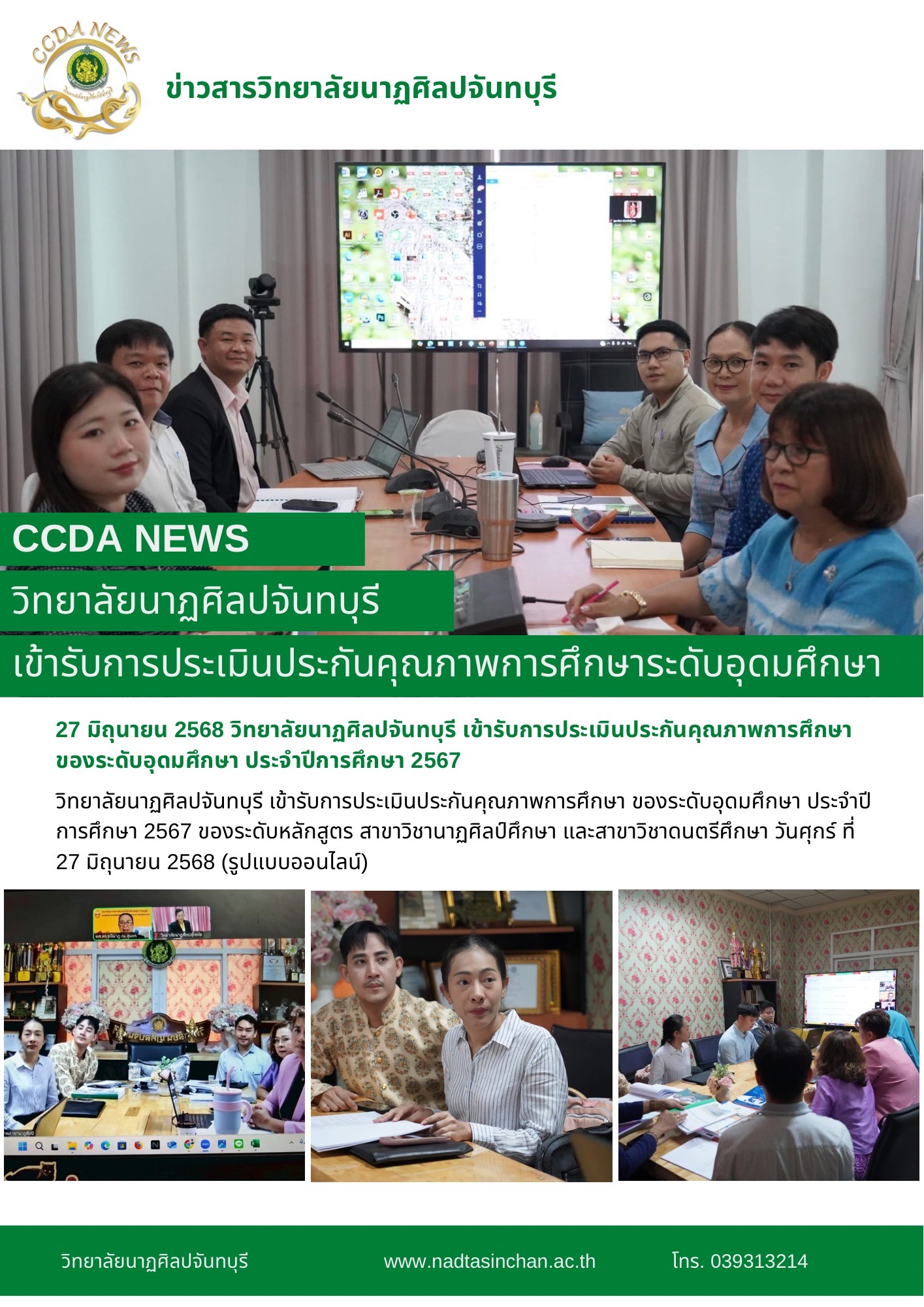 วิทยาลัยนาฏศิลปจันทบุรี เข้ารับการประเมินประกันคุณภาพการศึกษา ของระดับอุดมศึกษา ประจำปีการศึกษา 2567 ของระดับหลักสูตร สาขาวิชานาฏศิลป์ศึกษา และสาขาวิชาดนตรีศึกษา วันศุกร์ ที่ 27 มิถุนายน 2568 (รูปแบบออนไลน์)