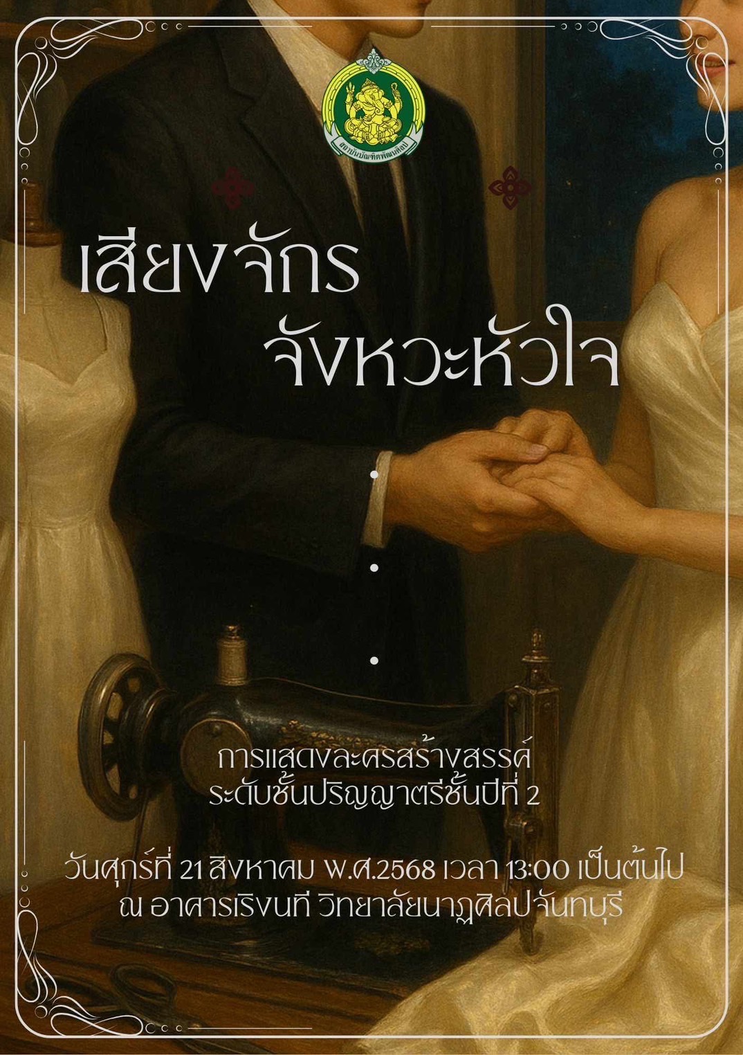 ขอเรียนเชิญทุกท่านเข้าร่วมชมการแสดงละครเวทีสร้างสรรค์ ชุด เสียงจักร..จังหวะหัวใจ
