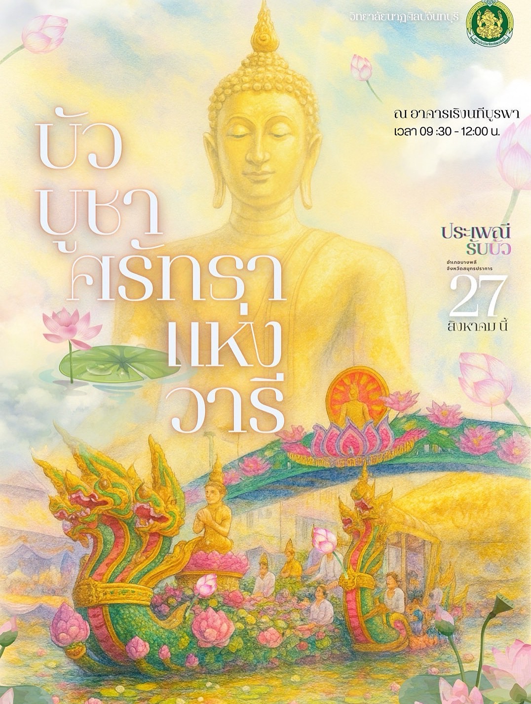 ??ในวันพุธที่ 27 สิงหาคม 2568 ตั้งแต่เวลา 9:30-12:00 ณ.อาคารเริงนทีบูรพา วิทยาลัยนาฏศิลป์จันทบุรี