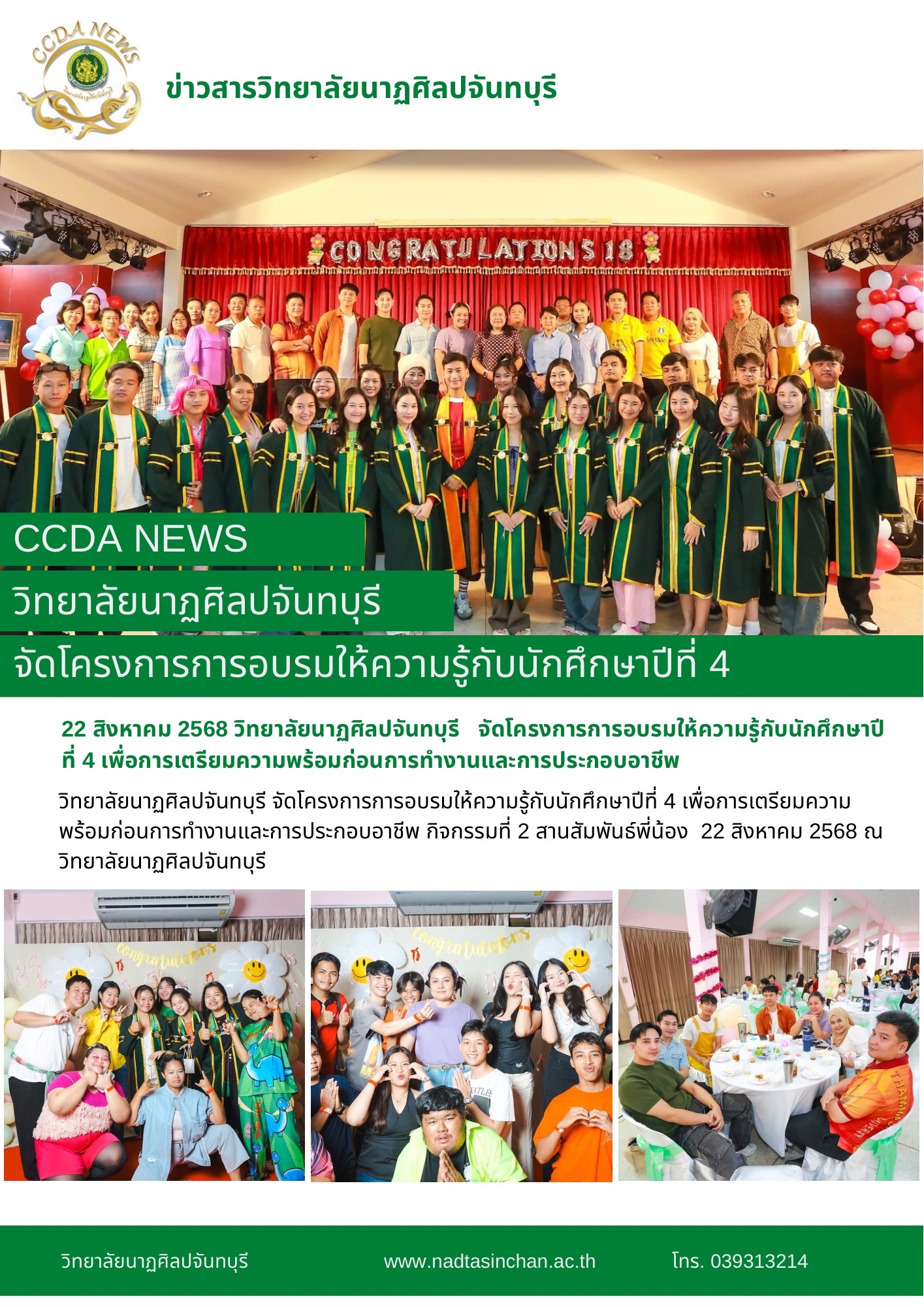 ?วิทยาลัยนาฏศิลปจันทบุรี จัดโครงการการอบรมให้ความรู้กับนักศึกษาปีที่ 4 เพื่อการเตรียมความพร้อมก่อนการทำงานและการประกอบอาชีพ กิจกรรมที่ 2 สานสัมพันธ์พี่น้อง