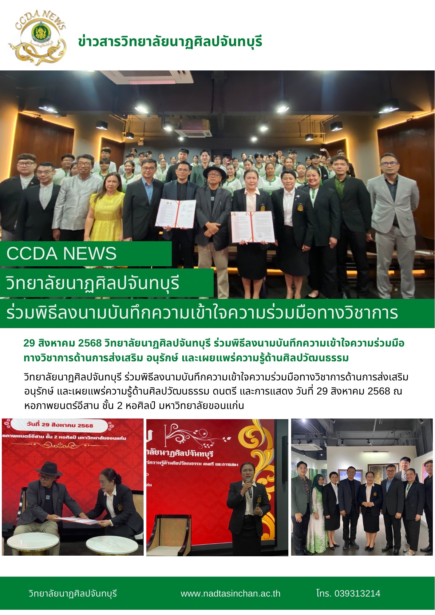 วิทยาลัยนาฏศิลปจันทบุรี ร่วมพิธีลงนามบันทึกความเข้าใจความร่วมมือทางวิชาการด้านการส่งเสริม อนุรักษ์ และเผยแพร่ความรู้ด้านศิลปวัฒนธรรม ดนตรี และการแสดง วันที่ 29 สิงหาคม 2568 ณ หอภาพยนตร์อีสาน ชั้น 2 หอ