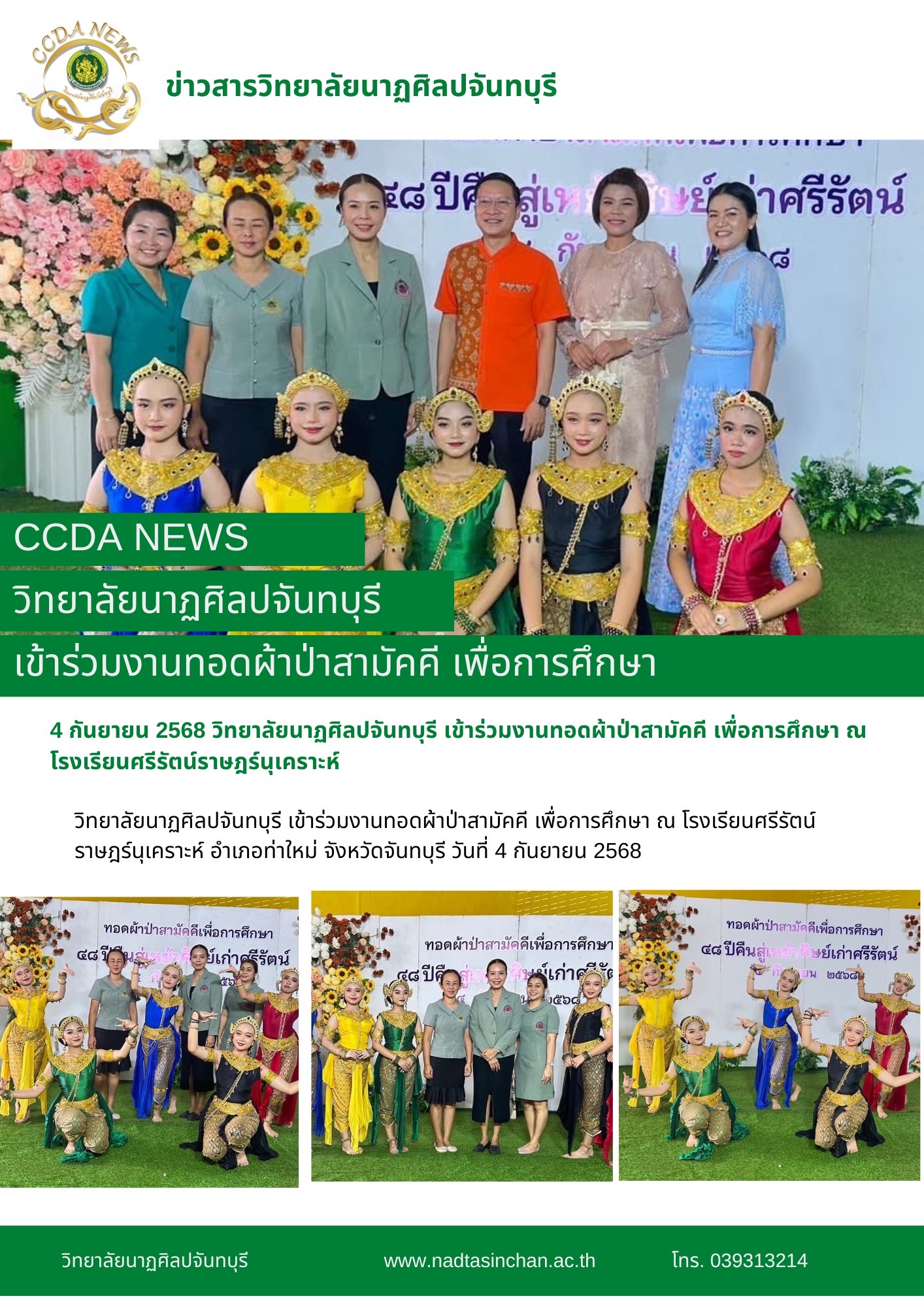 วิทยาลัยนาฏศิลปจันทบุรี เข้าร่วมงานทอดผ้าป่าสามัคคี เพื่อการศึกษา ณ โรงเรียนศรีรัตน์ราษฎร์นุเคราะห์ อำเภอท่าใหม่ จังหวัดจันทบุรี วันที่ 4 กันยายน 2568