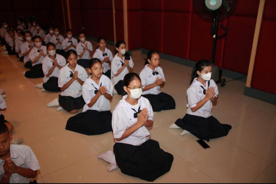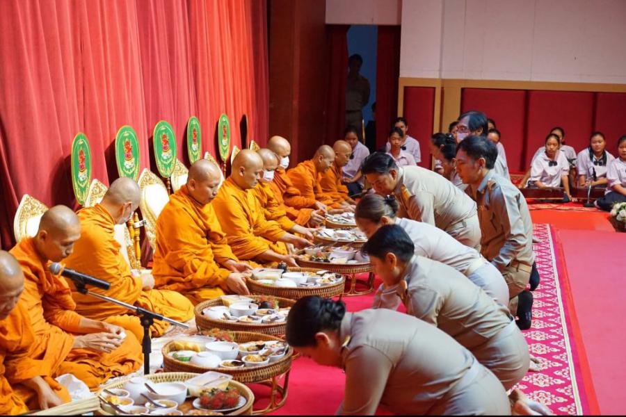 พิธีถวายภัตตาหารเช้าแด่พระสงฆ์ จำนวน ๙ รูป ในพิธีไหว้ครูสามัญและศิลปะ ประจำปีการศึกษา ๒๕๖๘ วันที่ ๒๙ พฤษภาคม ๒๕๖๘ ณ อาคารเทพภิรมย์ วิทยาลัยนาฏศิลปจันทบุรี S:0